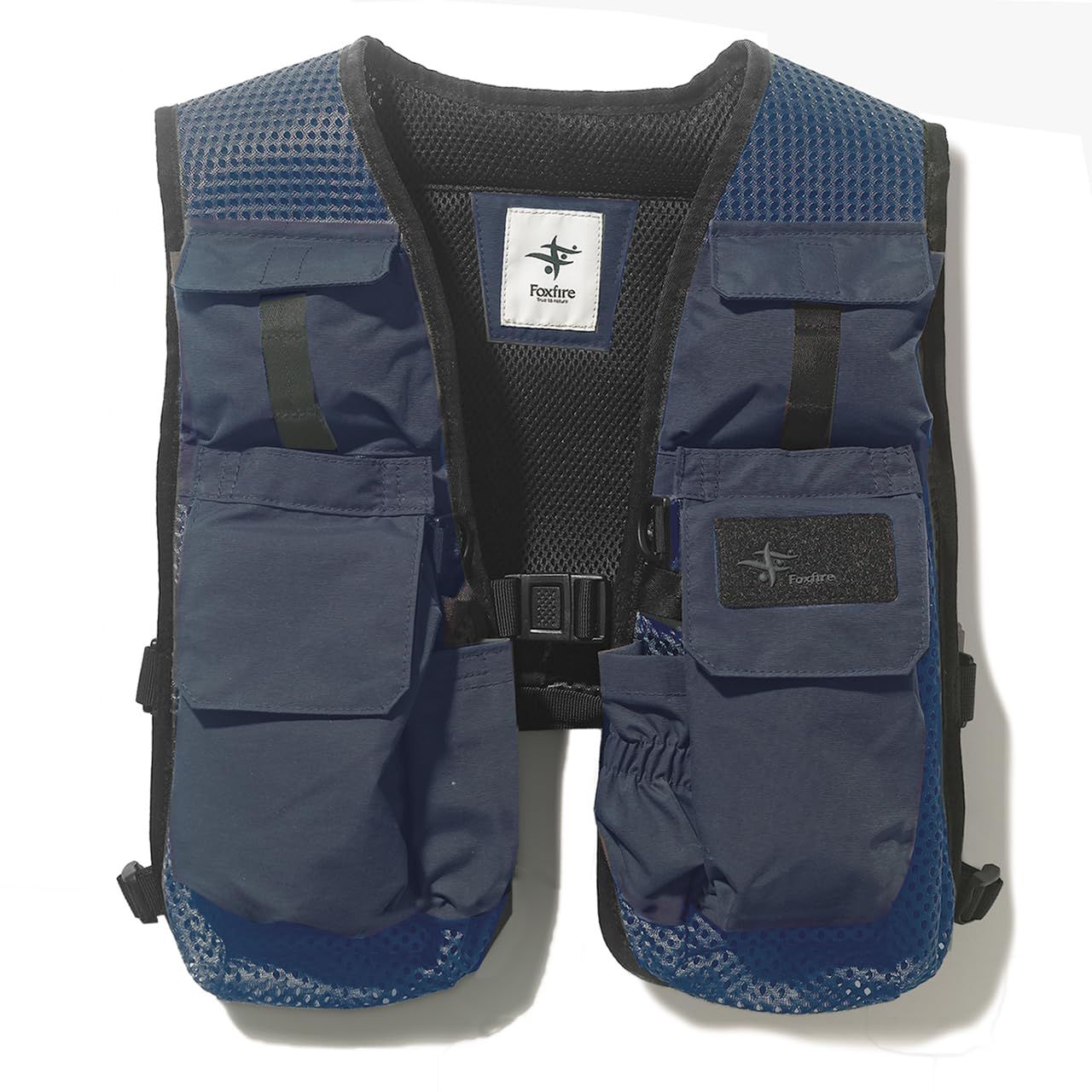 左右両側の前面ポケットに、重量のある水分ボトルをいれることが可能で、重くなりがちなバックポケットとの荷重バランスをとれるよう設計されています。十分な積載キャパシティを確保しながらも極力面積を抑えたデザイン、そしてメッシュ構造生地により、軽量で、蒸れ感もなく着用できます。さらにサイドストラップで身幅も自由に調節可能で、天候による着衣量の変化や、ウェーダー/ウェットウェーディングのスタイル変化にも対応します。タフなシーズン、タフな渓で、安全・快適に釣りをするために、豊富な経験を持つプロフェッショナルフィッシングガイド(渋谷直人氏)の優れた知恵によって創られた、真に実践仕様のベストです。