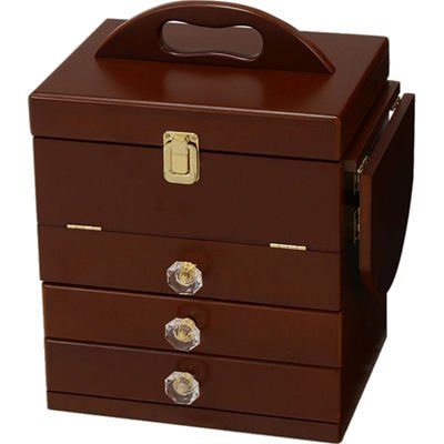 ●クリスタル型の取っ手が可愛い!三面鏡がついた大容量のコスメボックス。サイドにバタフライ式のミニテーブルも付いています。