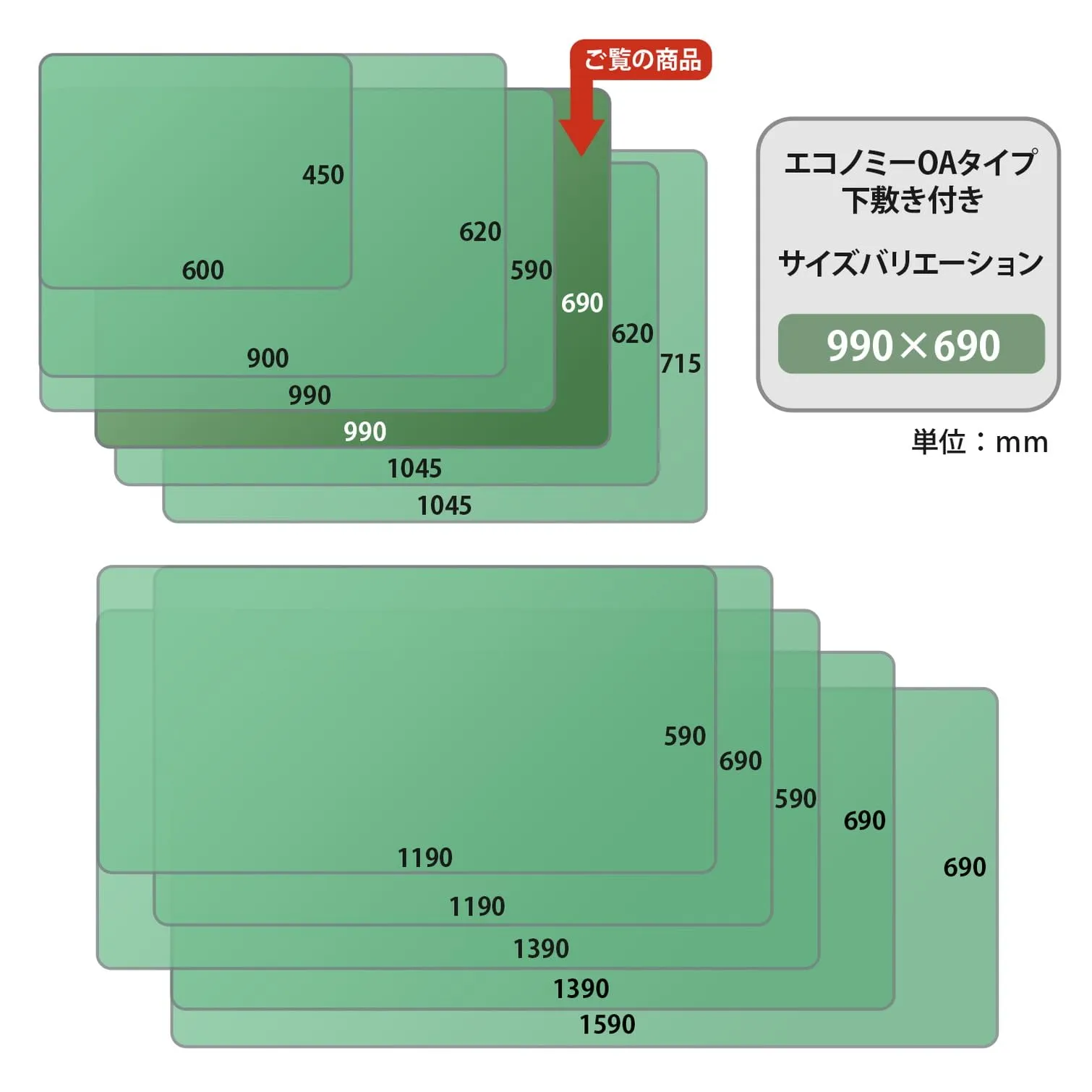ななめカット デスクマット(再生塩ビ)OAタイプエコノミー シングルタイプ(下敷なし)