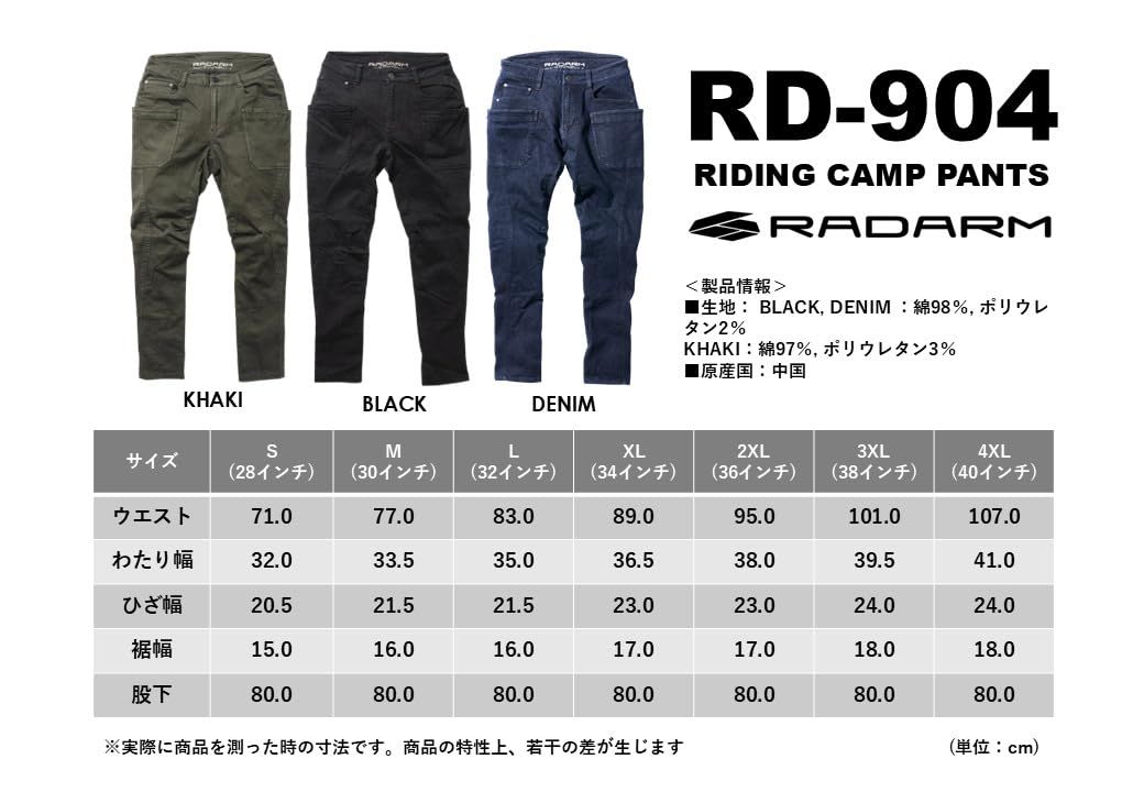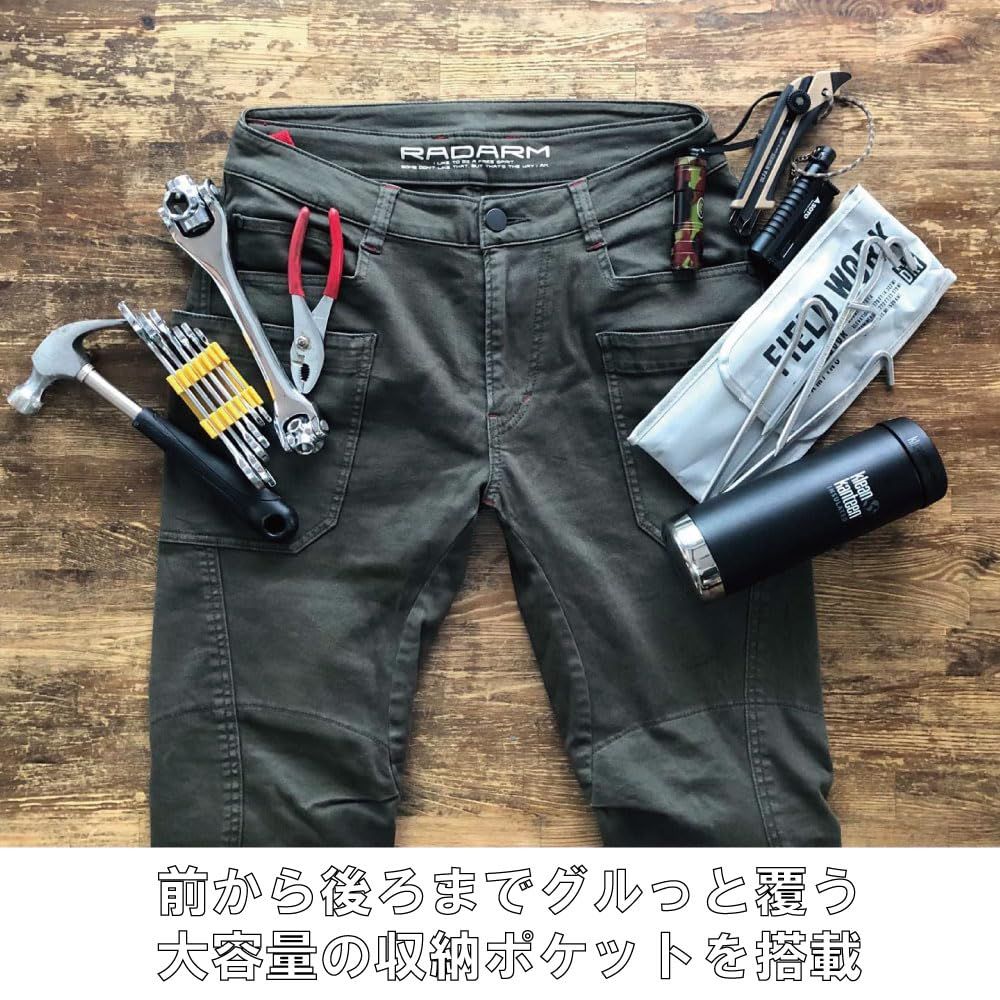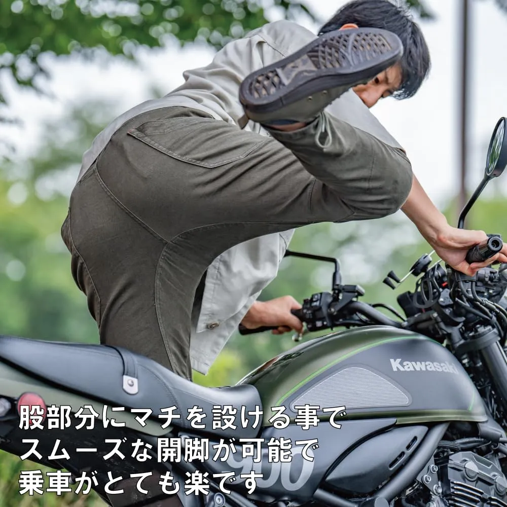 【街にも馴染むナチュラルデザイン】カーゴパンツのようなカジュアルな見た目で、ツーリング先でも街歩きでも違和感なし。アウトドアにも普段着にも使える万能スタイル。