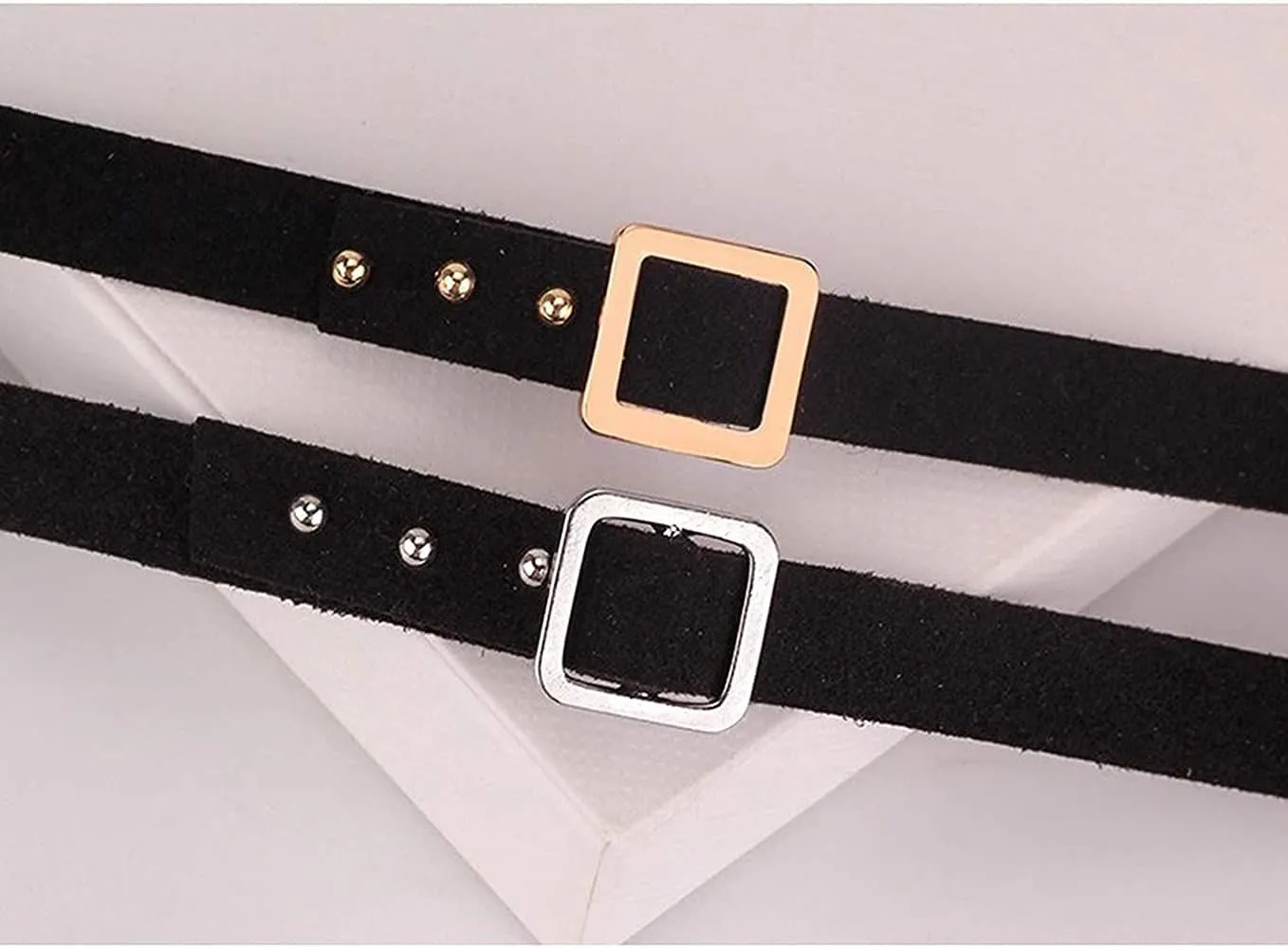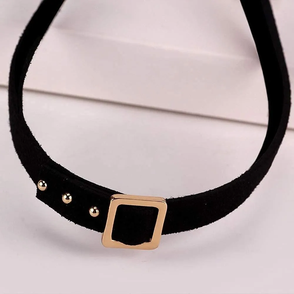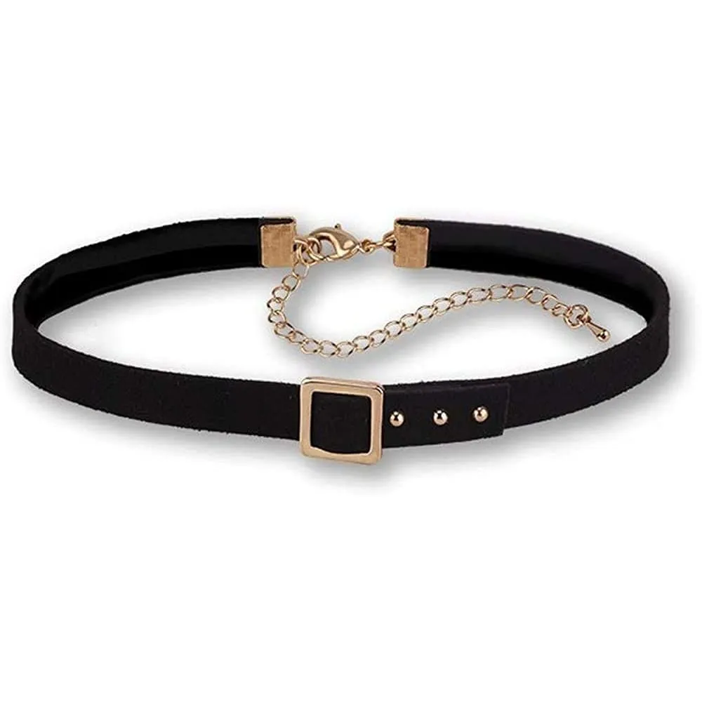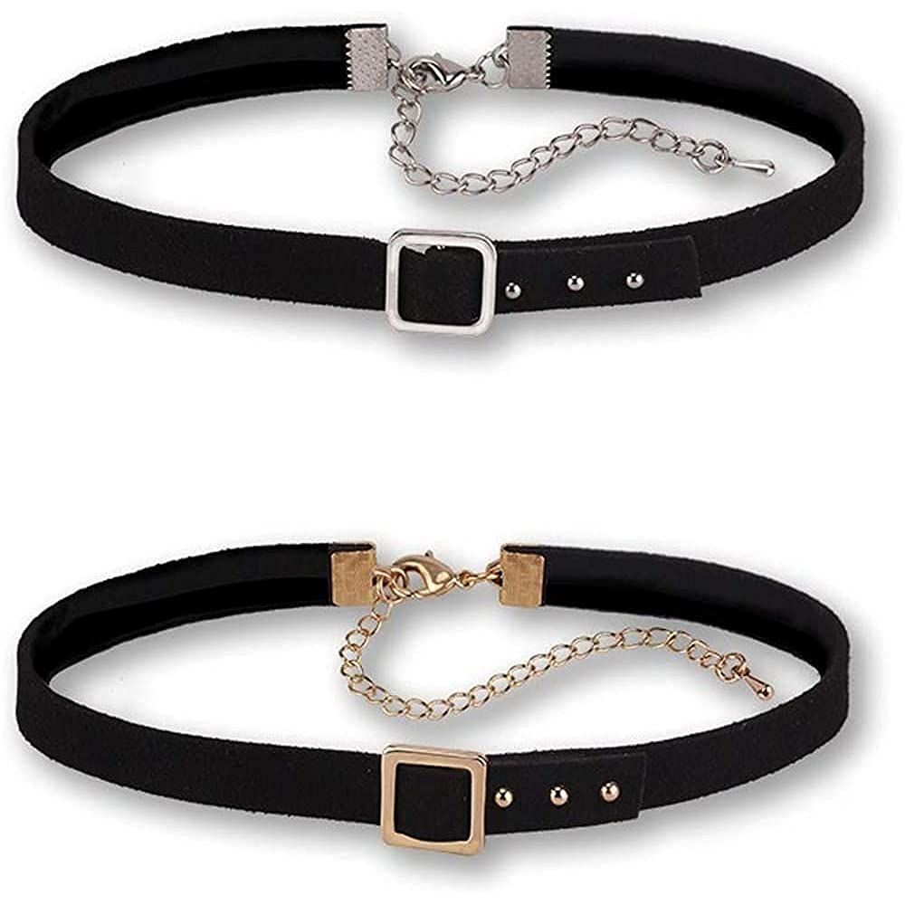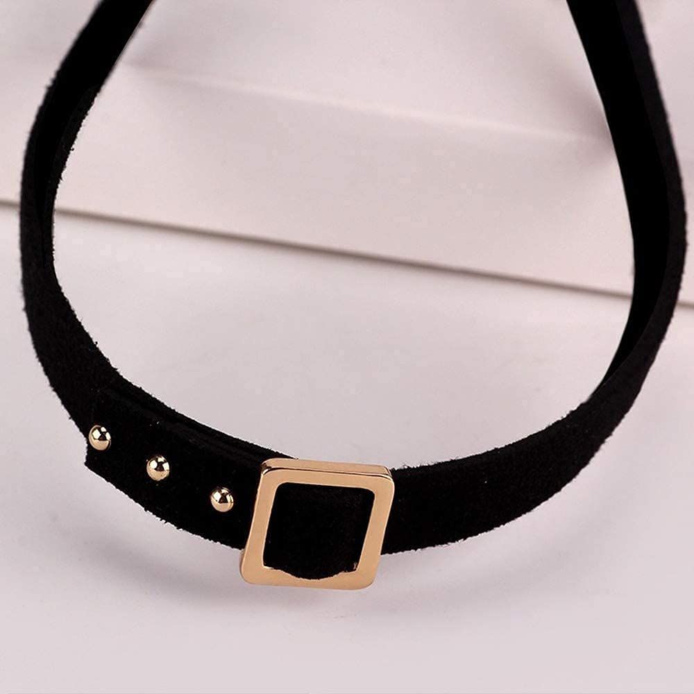 【ベルトデザインチョーカー】Deelfelの黒レザーチョーカーは、ユニークなベルトデザインが特徴で、ゴールドとシルバーのバックルが選べます。女性らしい美しさと個性を引き立てます。