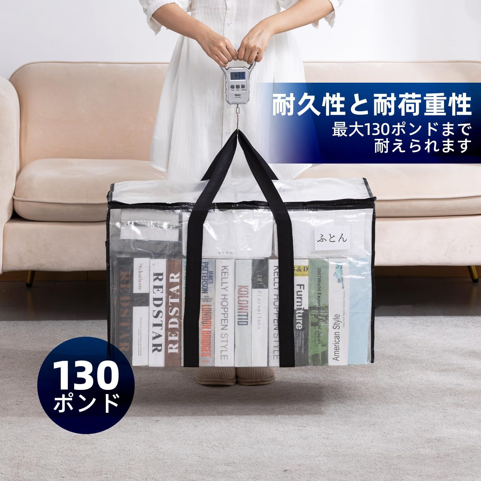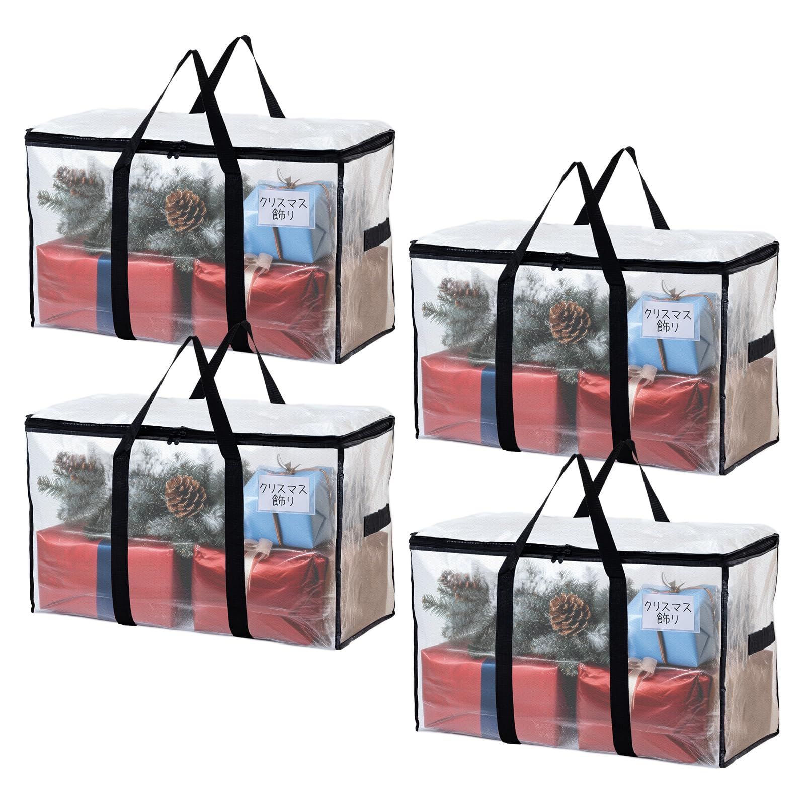 TAILI 大きいバッグ 布団収納袋 引越しバッグ 収納ケース 特大容量 透明窓 持ち手付き 衣装ケース 洋服 羽毛布団 防塵防水 折りたたみ式 カバン 省スペース 引っ越し 背負える キャンプ 旅行 耐荷重 透明 4個セット 100L