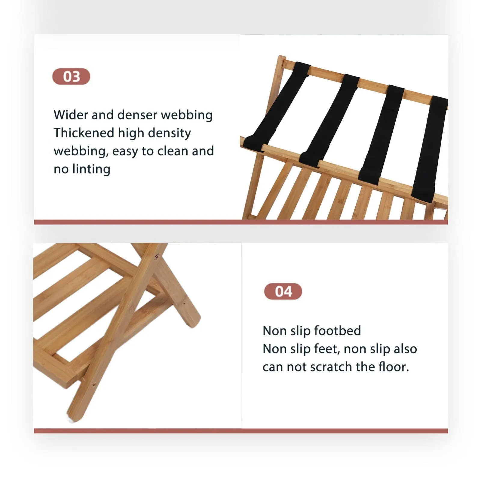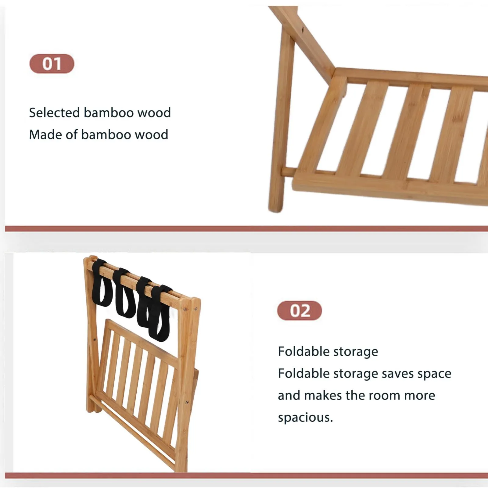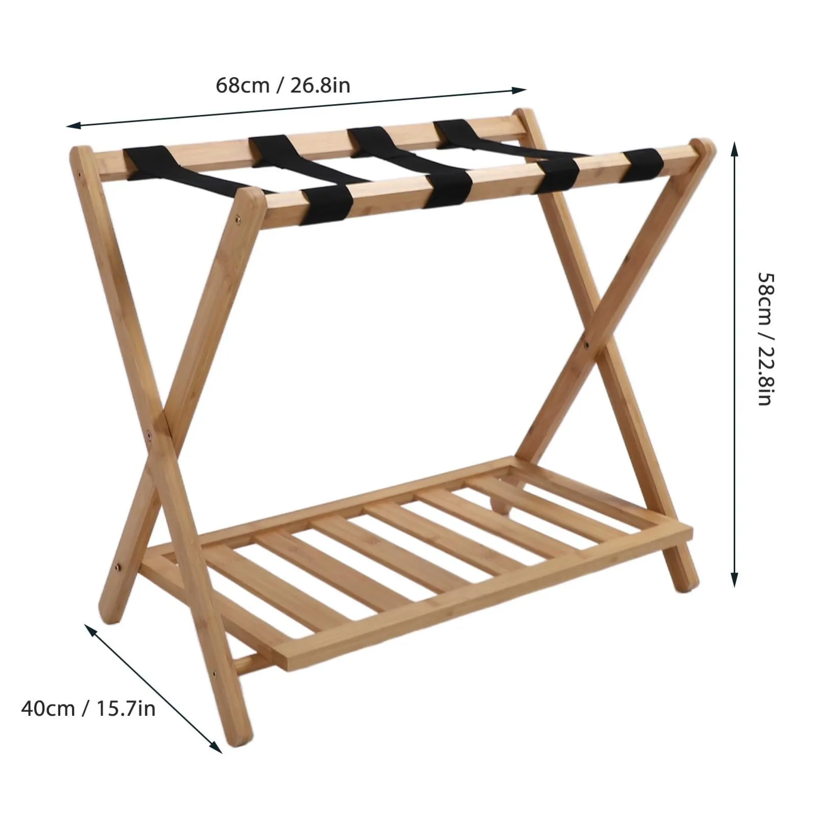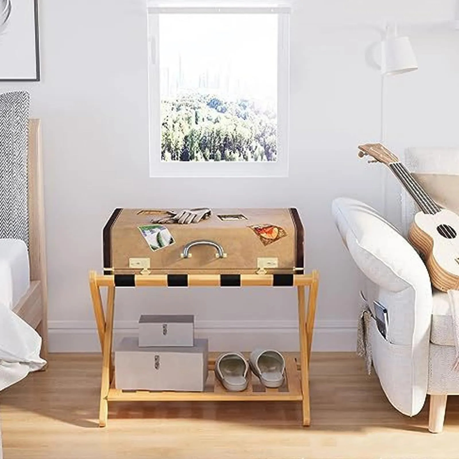Jeffergarden折りたたみ荷物ラック 木製スーツケーススタンド 荷物置き 木製荷物ラック 折りたたみスーツケーススタンド 省スペース 2段 頑丈 ポータブル 靴 服 バッグ 寝室 ベッドルーム ホテル 旅行用