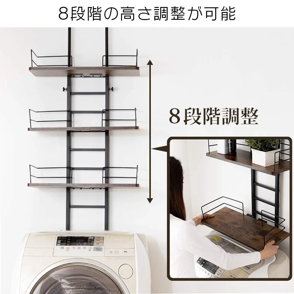 アイリスプラザ ランドリーラック 洗濯機ラック 突っ張り式 突っ張りランドリー 幅60cm 8段階 高さ調節 RDLK-2660WN ウォールナット×ブラック