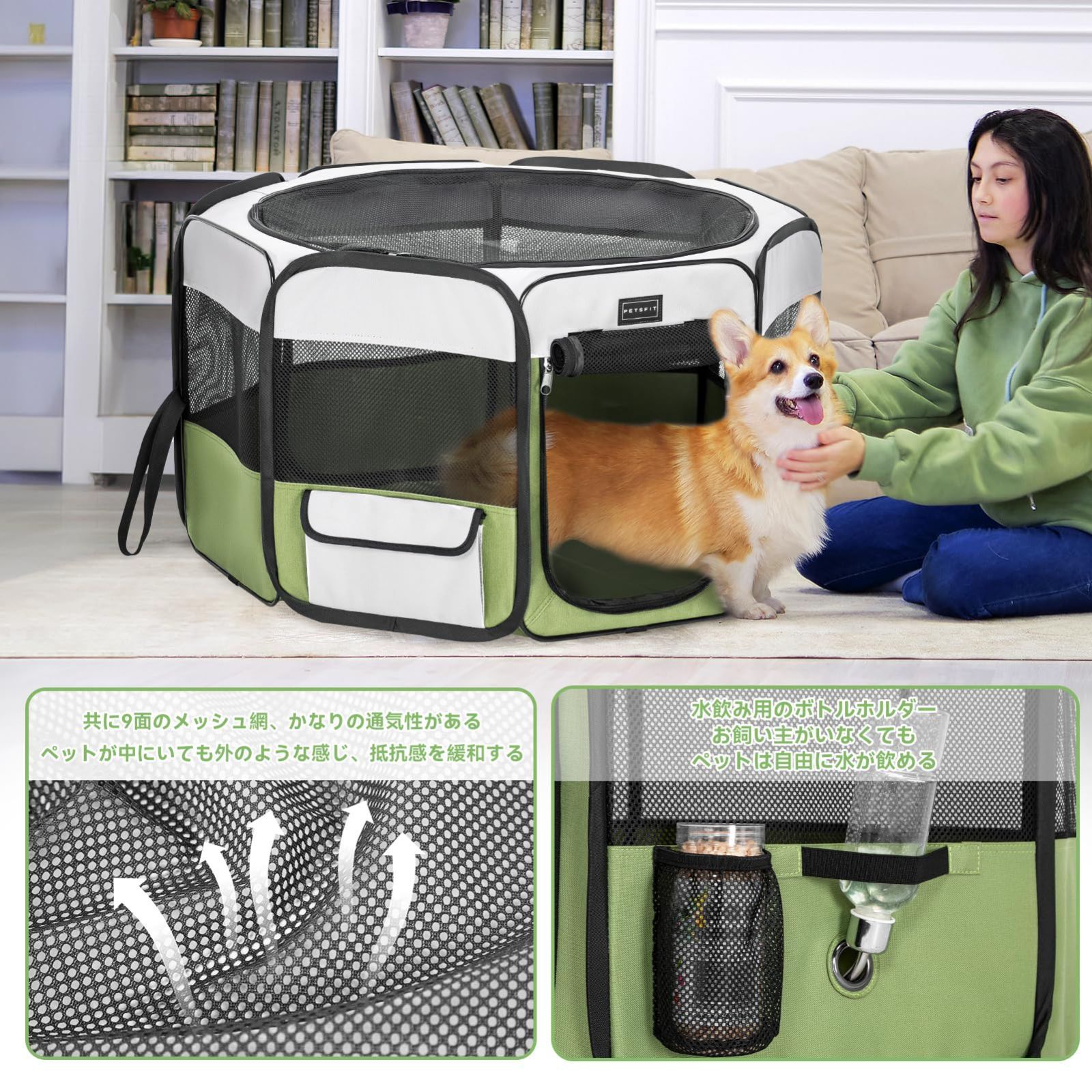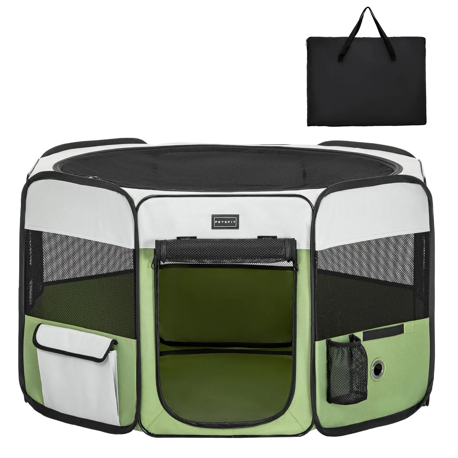 petsfit ペットサークル 折りたたみ 軽量 八角形 収納バッグ付き メッシュトップ 飛び出し防止設計 しっかり 室内 屋外 キャンプ 旅行 猫 犬 洗える 多用途