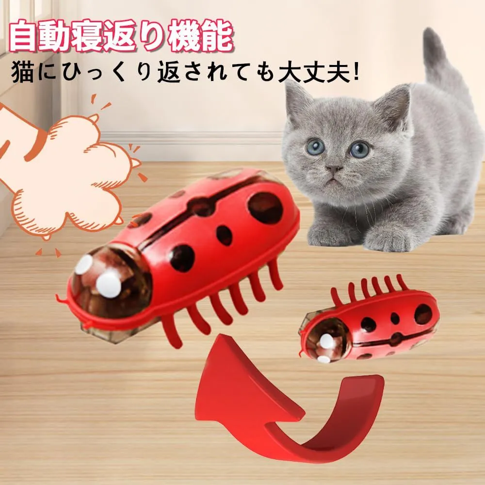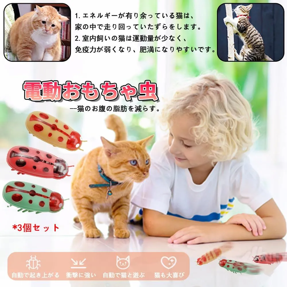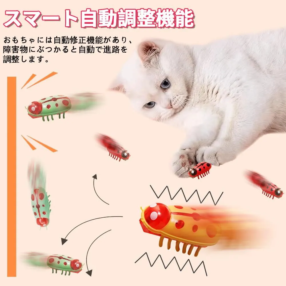 電動おもちゃ 虫 3個セット 電池式猫ちゃんおもちゃ 電気ペットのおもちゃ 自動 猫 玩具 一人遊び 自動寝返り機能 Cat'sbug! てんとう虫 ミニ電子カブトムシ 猫用インタラクティブ・トイ 運動不足解消 猫おもちゃ飽きない キャッチミー(てんとう虫ブラック レッド +グリーンレッド+イエローレッド)
