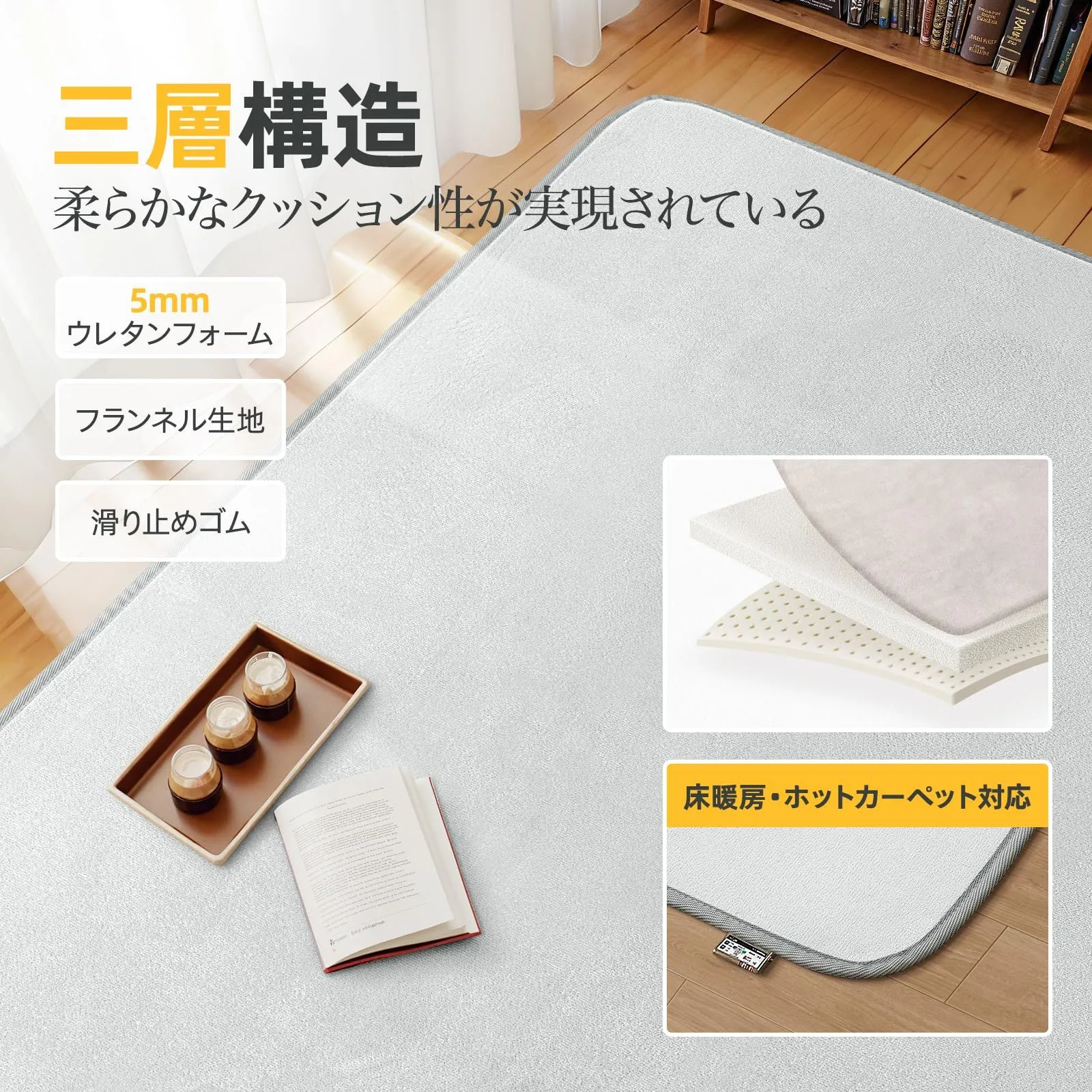 【フランネルラグ-優れた肌触り】極細繊維で作られたフランネル素材のラグマットはソフトでしなやか、滑らかな感触を実現します。肌ざわり良いし、短毛タイプのラグマットなので、ネコや犬の毛が付いても、掃除機で簡単に取れます。
