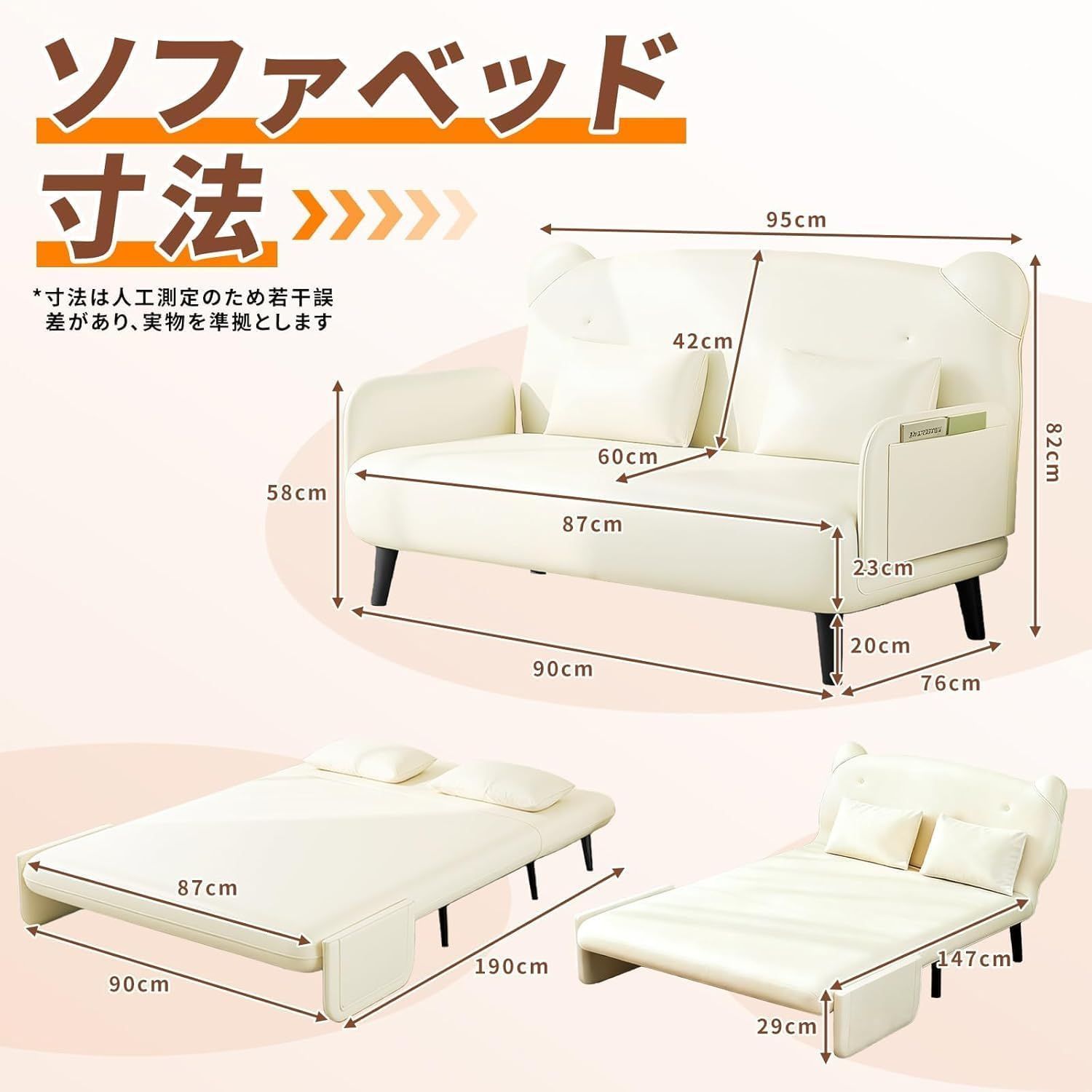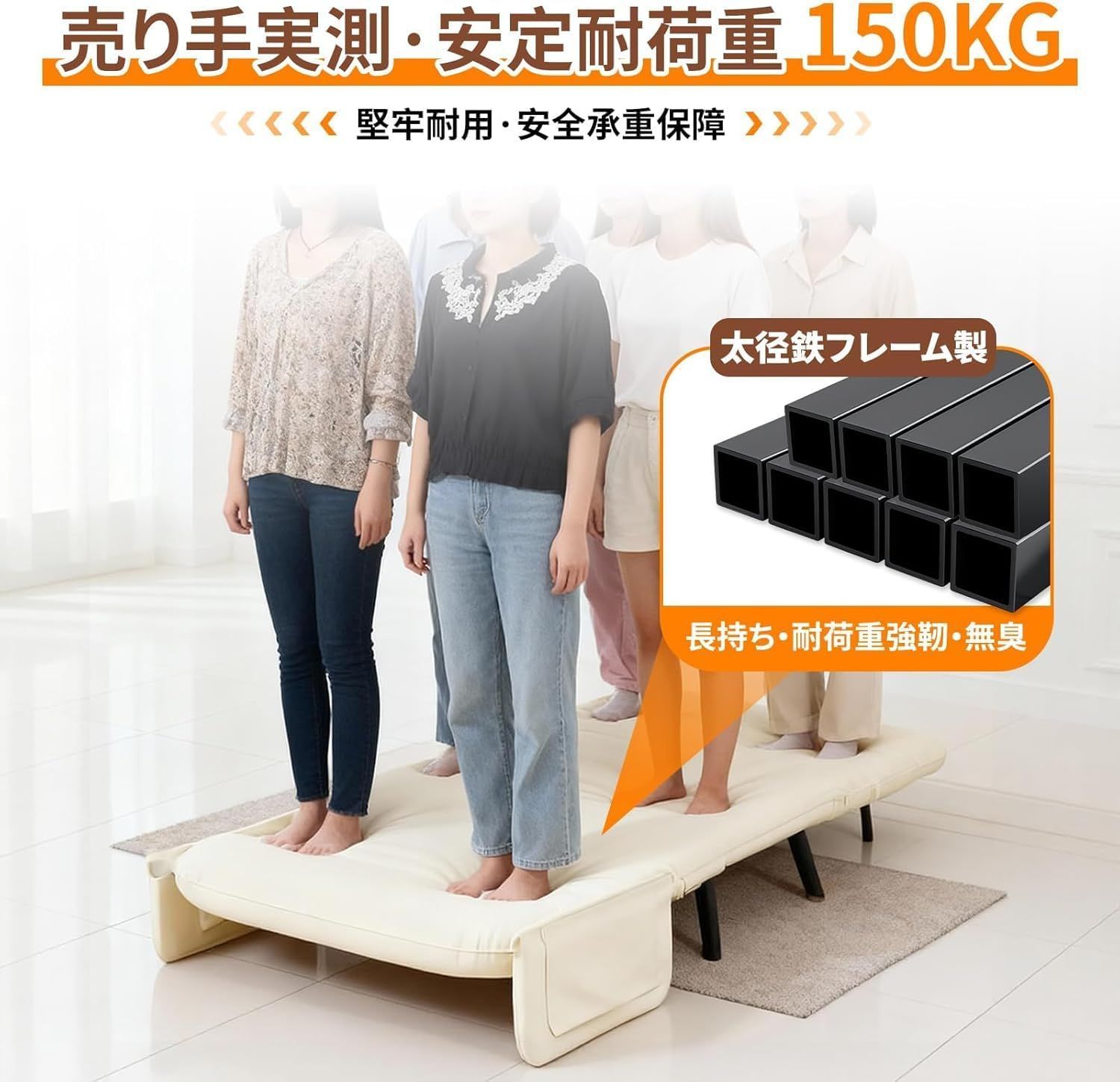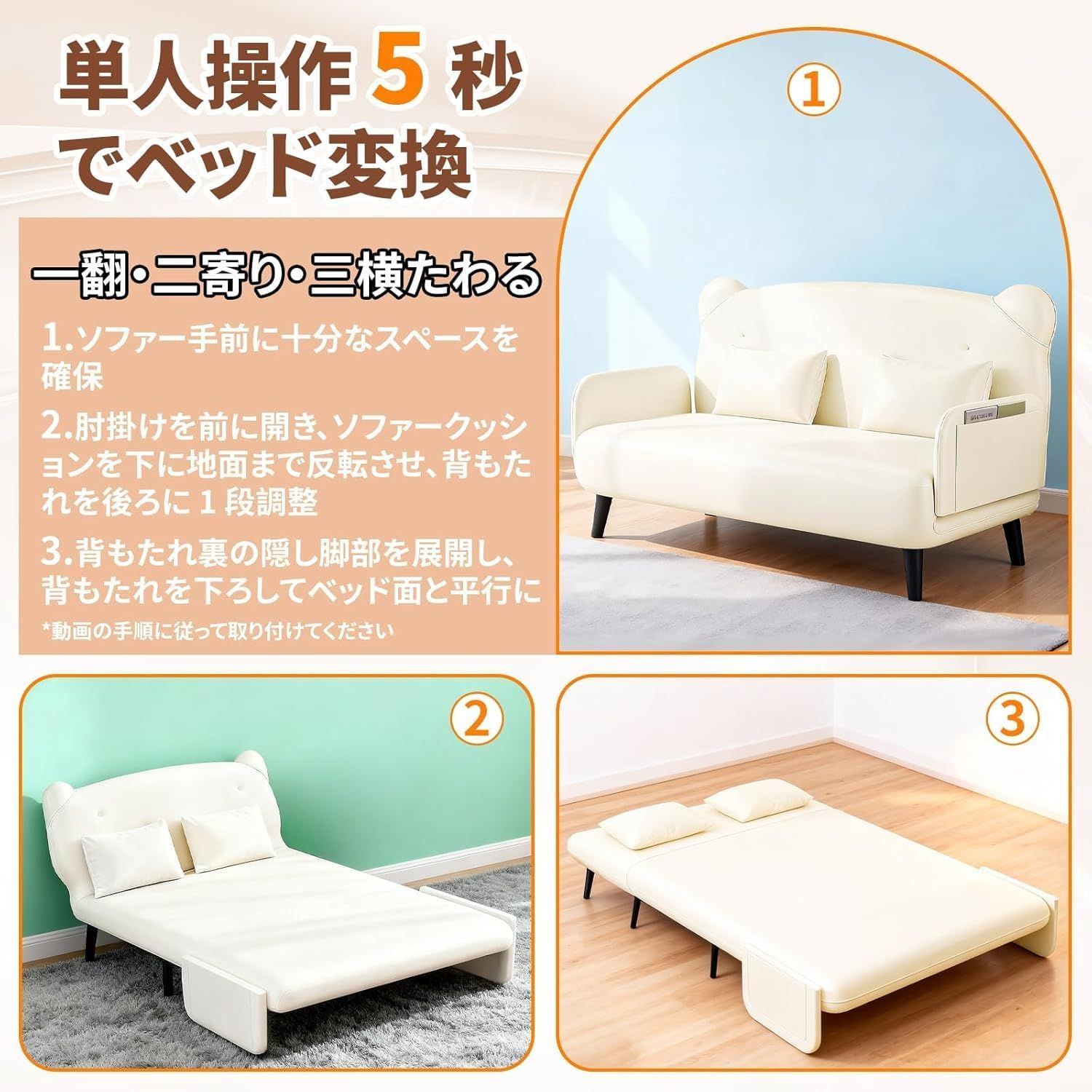 ?? ワンタッチ操作で誰でも簡単変形:ベッドへの変形は簡単ワンタッチ式で、力のない女性でもスムーズに操作可能。リビング、寝室、ゲストルームはもちろん、オフィスや待合室、学生寮など、様々な空間で活用できます。特別な工具や組み立て知識が不要なのが魅力です。
