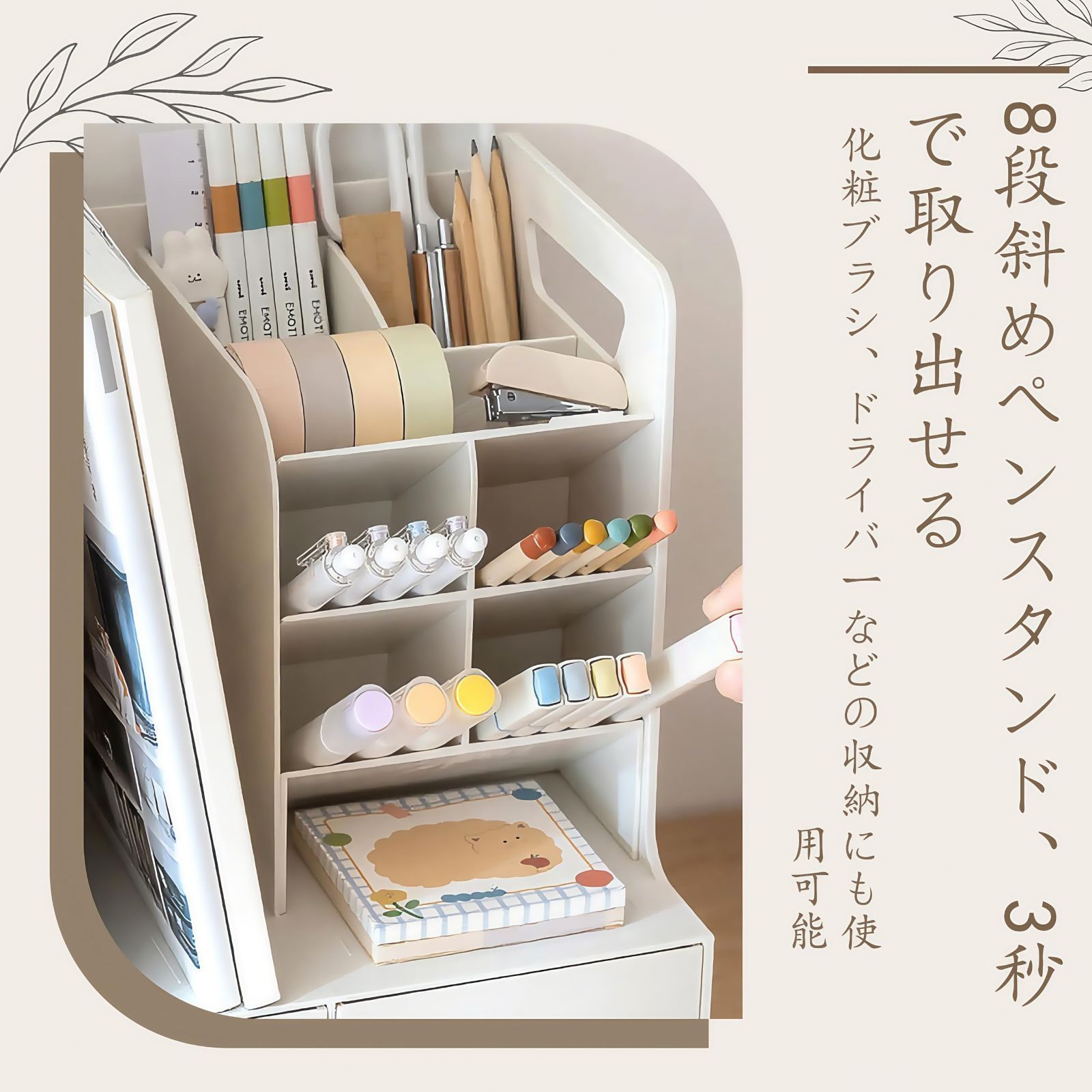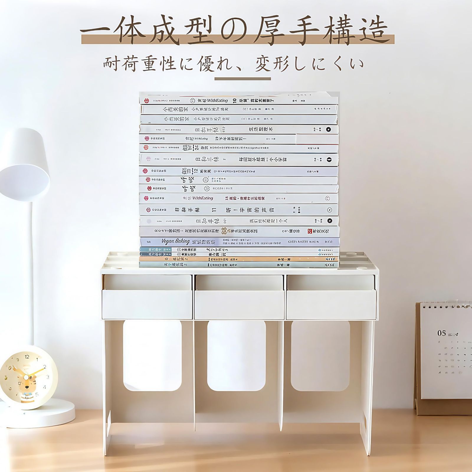 【組み立て不要・移動が楽々】この卓上ラックは組み立てが一切不要!箱から出してすぐに使えます。組み立ての時間や手間が大幅に削減され、部屋の飾り付けに時間を費やせます。デスクオーガナイザーは軽量で持ち運び簡単。両側にハンドルが付いているため、引っ越しやお部屋の模様替えの際も、移動が非常に楽です。