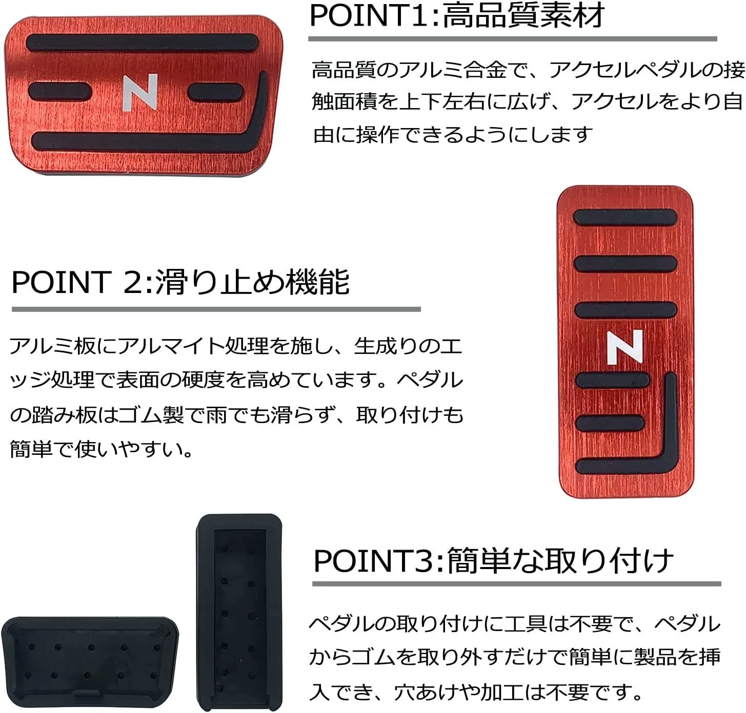 アクセルペダル:純正ペダルの上からかぶせて取り付け