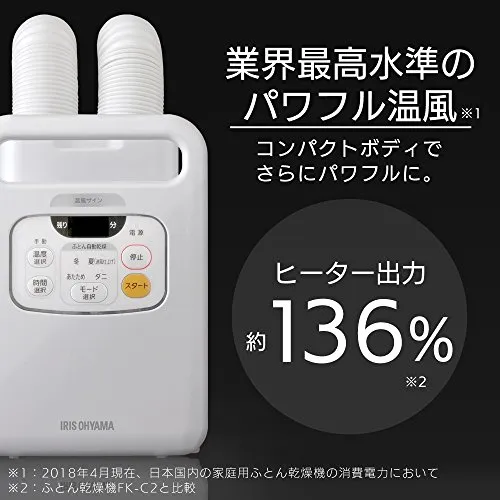 【靴乾燥機としても】アイリスオーヤマ 布団乾燥機 ふとん乾燥機 布団2組・靴2組対応 ダニ退治 カラリエ メーカー保証付き 温風機能 マット不要 ツインノズル ホワイト FK-W1-WP・ c41b4b52