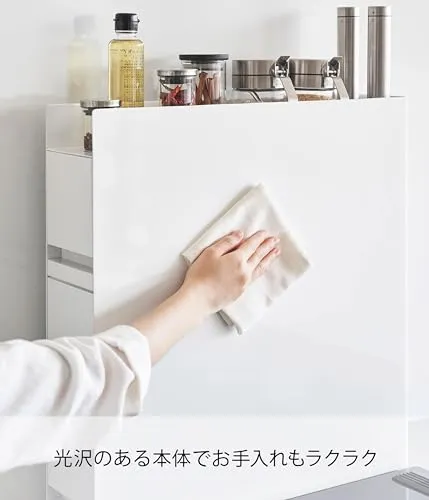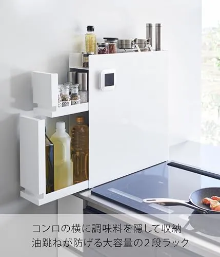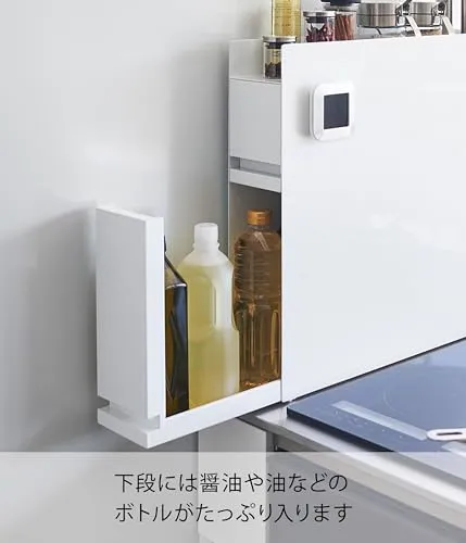 山崎実業(Yamazaki) 【 完成品 ストッパーのみ要取付 】 隠せる 調味料ラック 2段 ホワイト 約W12.5×D50?93×H52.5cm タワー tower 大容量 引き出し式 コンロ横 キッチンラック 4334・ 9c398413
