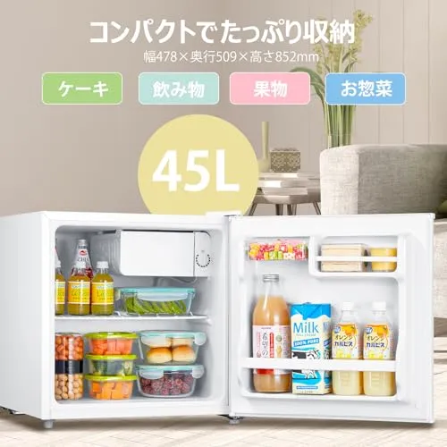 【コンパクト設計】本体サイズ:幅472奥行450高さ492mm、重量:17KG、容量:45L。どこでも馴染む、ちょうどいいサイズ感、ひとり暮らしの部屋で大活躍です!