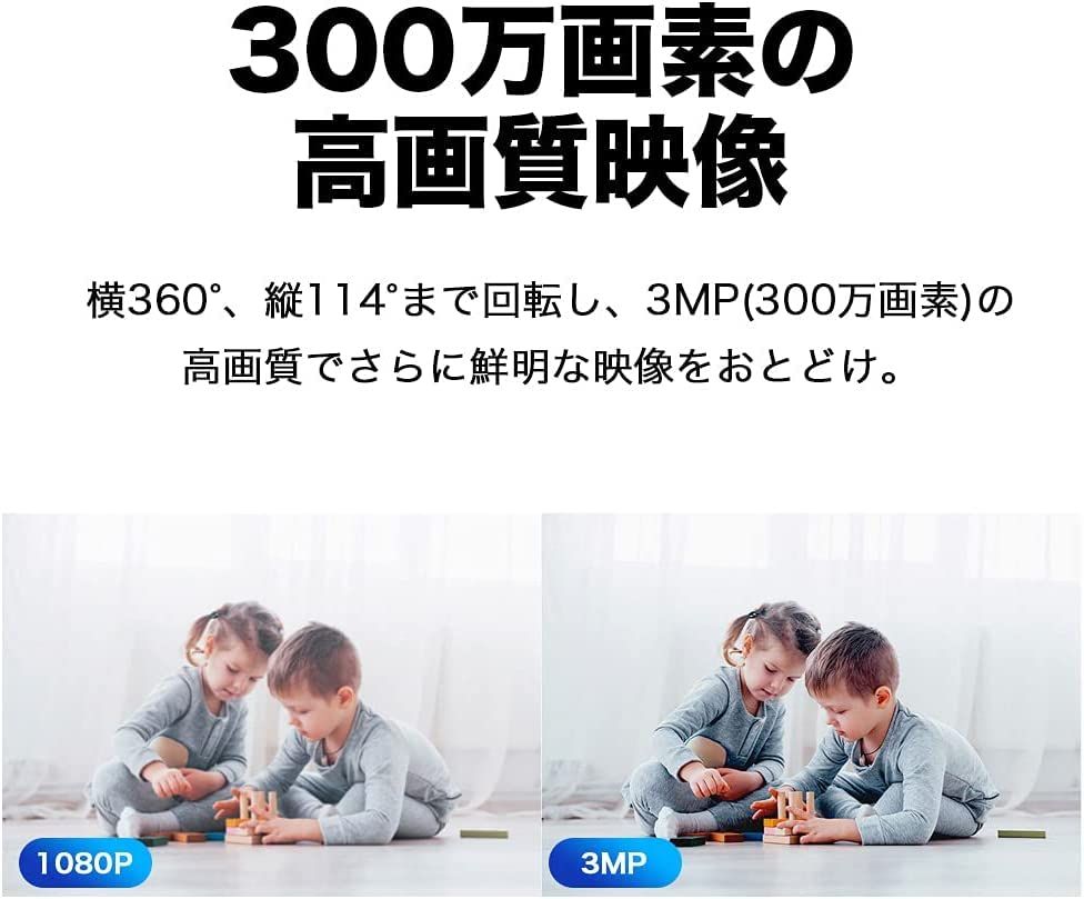 [特徴] 300万画素。横360度、縦114度まで回転するパン・チルト機能搭載のみまもりカメラ。 [microSD対応] 最大256GBまでのmicroSDカードに対応 [音声会話可能] スマホアプリから音声会話を楽しめます [動的検知&スマホ通知] 動作を感知しスマホに通知が可能です 80ad24a7