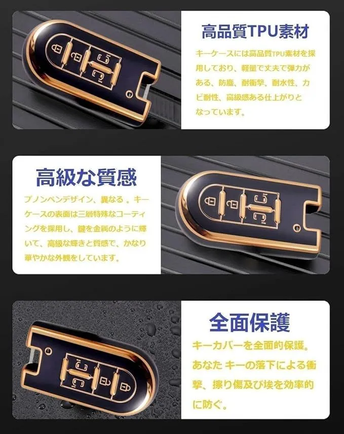 トヨタ ダイハツ スマートキーケース TPU キーカバー ルーミー タント ブラック×ゴールド