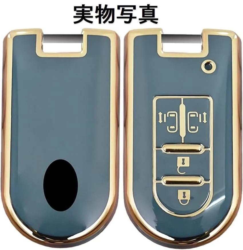トヨタ ダイハツ スマートキーケース TPU キーカバー ルーミー タント グレー×ゴールド