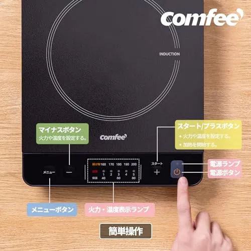 【多機能選択・多段階火力調整】3種類のメニューを搭載しています。ゆでる、煮る、焼くや炒めるモードに適している「加熱調理」です。「加熱調理モード」は最大火力1000Wに設定することができるので、用途に合わせてお使いいただけます。「揚げ物調理」で、食材の特性に応じて温度の異なる油温を選択して操作することができますし、5段階(160200)の油温に設定します。「保温モード」で3段階(40/60/80)の温度を選択します。