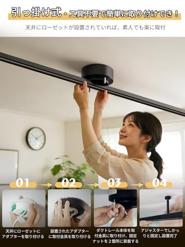 『工具不要!誰でも簡単に取り付け可能』 照明 レールは直掛け式で、特別な工具は必要ありません。シーリング レールを天井に簡単に取り付けることができ、穴を開ける心配もありません。さらに、取り付け方法が不安な方のために、商品のページに取り付け動画をご用意していますので、誰でも安心して取り付け