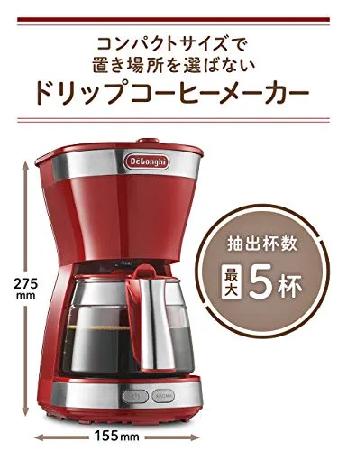 本体外寸(mm):幅155奥行285高さ275 / 本体重量(kg):1.4(ガラスジャグ含む) / 消費電力(W):750 / 電圧・周波数:AC100V・50- / コードの長さ(m):1.8 / 抽出杯数:5杯(130ml5杯)/ 最大タンク容量:約650ml / 最大ジャグ容量:650ml