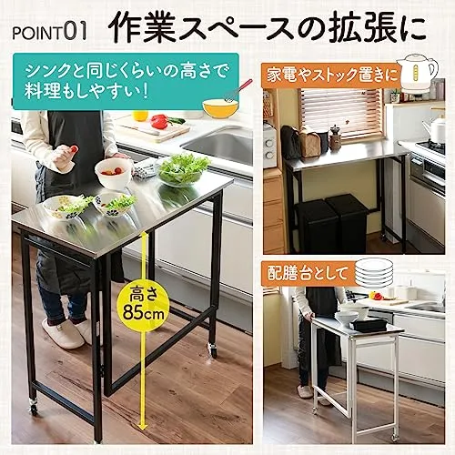 【作業のしやすい高さ設計】高さは85cmとキッチンカウンターと同じような高さになっているので、調理のときの補助台としても使いやすいです。