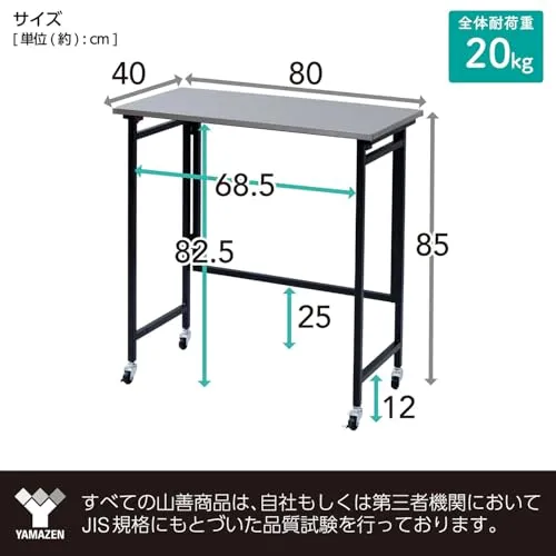 本体サイズ(約) : 幅80奥行40高さ85cm折りたたみ時 : 幅80奥行88高さ6.5cm全体耐荷重 : 20kg構造部材 : フレーム/金属(スチール)甲板の表面材 : 金属(ステンレス)表面加工 : フレーム/エポキシ樹脂塗装東証プライム(株)山善で扱うすべての山善商品は、自社もしくは第三者機関において、JIS規格に基づいた品質試験を行っております。