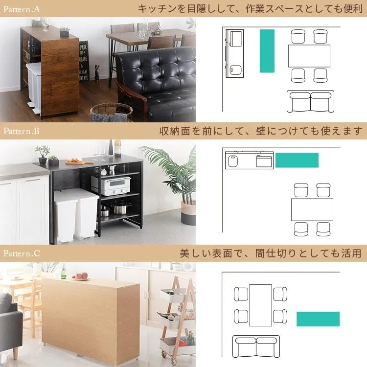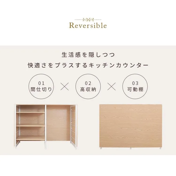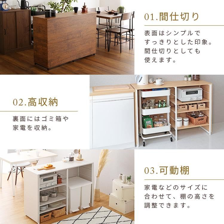 【おすすめポイント】:メラミン仕上げで水や汚れに強い。間仕切り、キッチンカウンターとして様々なシーンで使用可能。