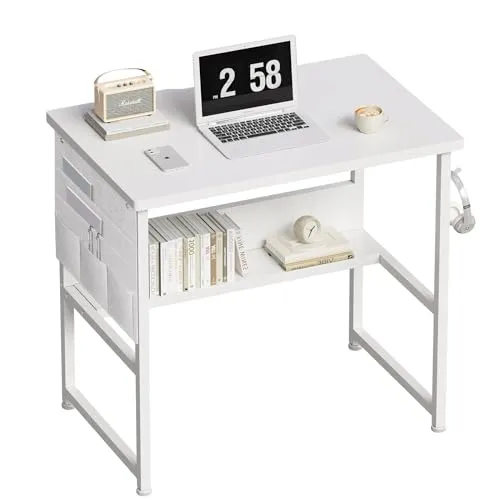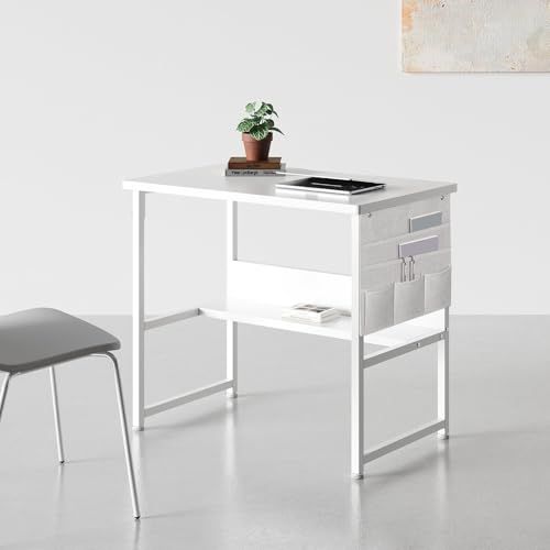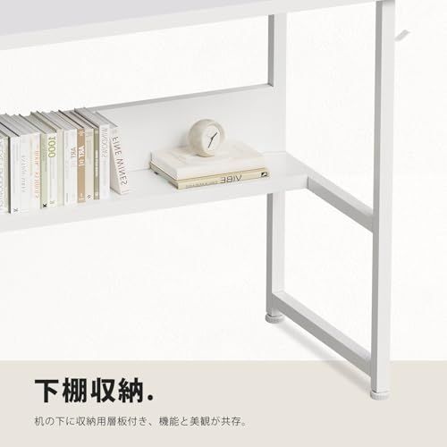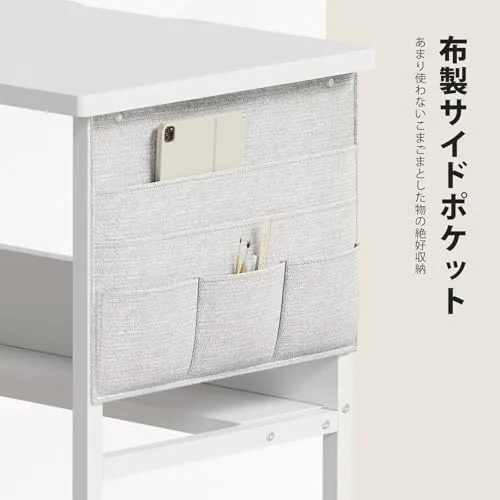 【収納性抜群】収納一体型で空間利用率UP!デスクの下にラック、イヤホンフック、サイドポケットも備え、本、辞書、CDなどの収納にとても便利です。仕事用のパソコンデスクだけでなく、子供の学習机としても最適です。