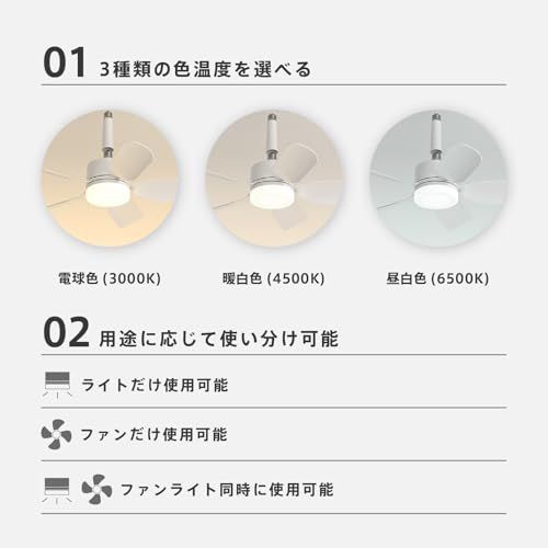 【工事不要・E26延長パイプ2本付き・幅広い用途】シーリングライト ファン 1分かけてファンブレードのテクスチャ面を上にして本体に取り付けるだけで、ランプボディの取り付けが完了します。次に2分かけてライト全体をE26ソケットにスイベルマウントします。工事業者に頼まずご自分で取り付けることが可能です。ニーズに応じて角形や丸型引掛シーリングなど多種E26種類の埋め込みローゼットや引掛けシーリングを選べ、本体をそのまま取り付けることが可能です。さらに、製品には2本のE26延長パイプが付属しており、最大390mmまで取り付け高さを延長できます。これにより、多種多様な場所での設置が非常に便利です。ファン付きLEDライトは部屋の真上から明るく快適で健康的な室内環境を作ります。引っ掛けモデル対応可能で工事不要、取り付けは簡単です。適用範囲:キッチン、寝室、リビング、ダイニング、玄関、廊下、ウォークインクローゼット、書房、納戸、倉庫、脱衣所、洗面所、トイレなどの場所に対応しており、好きな場所に設置できます