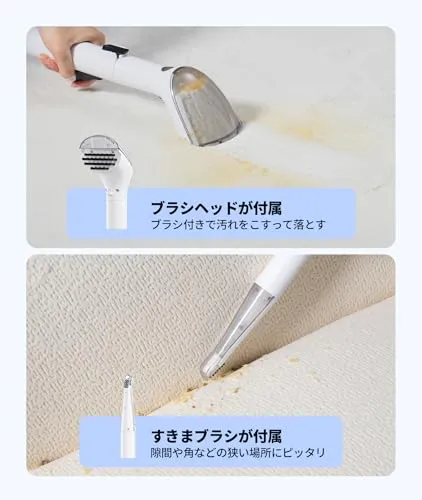 【パワフルな18kPa吸引力を実現】吸込仕事率450Wの高性能モーターを搭載、高い耐久性を保ちながら強力な18000Pa吸引力を実現しました。繊維の奥深くまで染み込んでいる汚れを水で浮かせてから一気に吸い取ります。常温な水だけでなく、約40までのお湯にも清水タンクに入れて使用できます。牛乳やジュース、おしっこやスープなどの汚れを効果的に洗浄可能、子どもやペットのいるご家庭に特におすすめです。