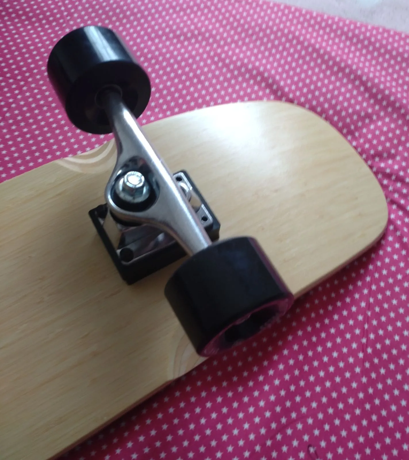 板をカスタマイズする上で 今流行はフロントにカービングTやスラスターを搭載した時に リアにカービングトラックを取り付けるのが流行っています 特にフロントトラックの旋回がスムーズになる分 それに対応する後ろのトラックの反応が通常トラックよりカービングトラックの方が旋回角度が広い分スムーズに反応してくれます