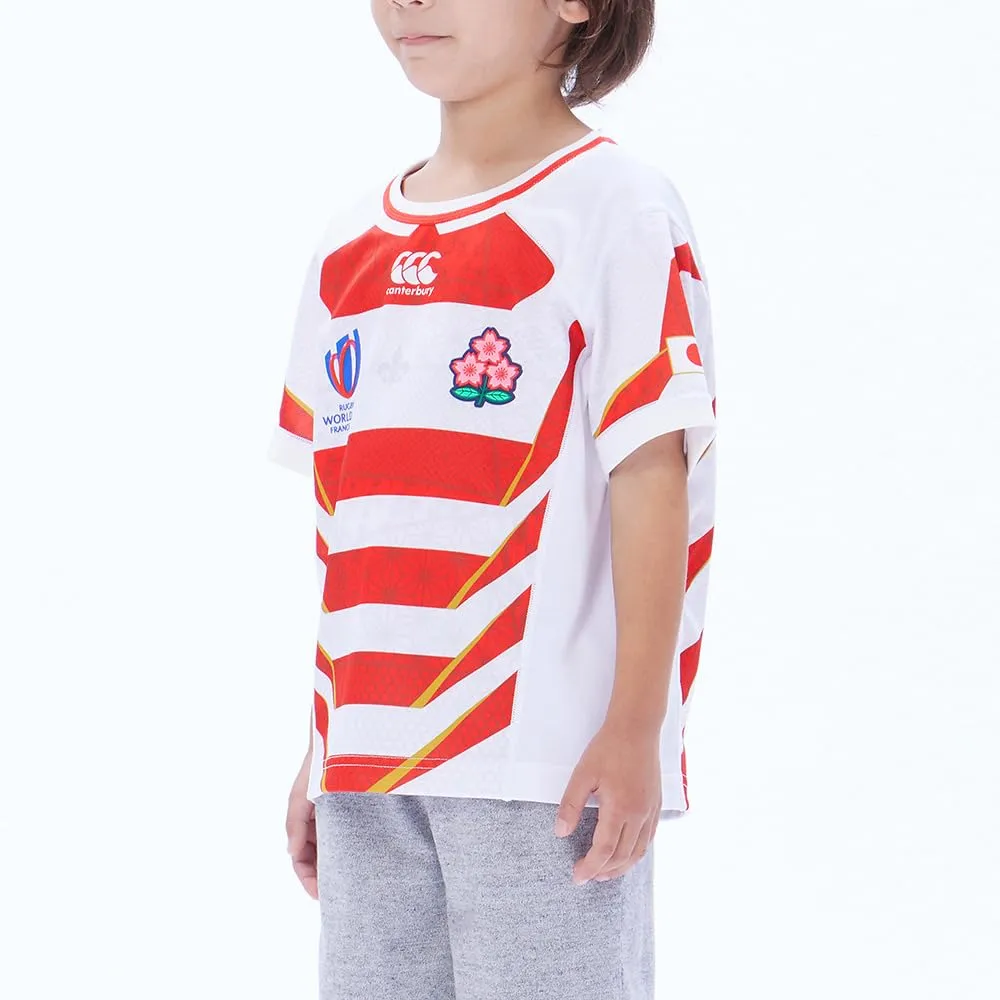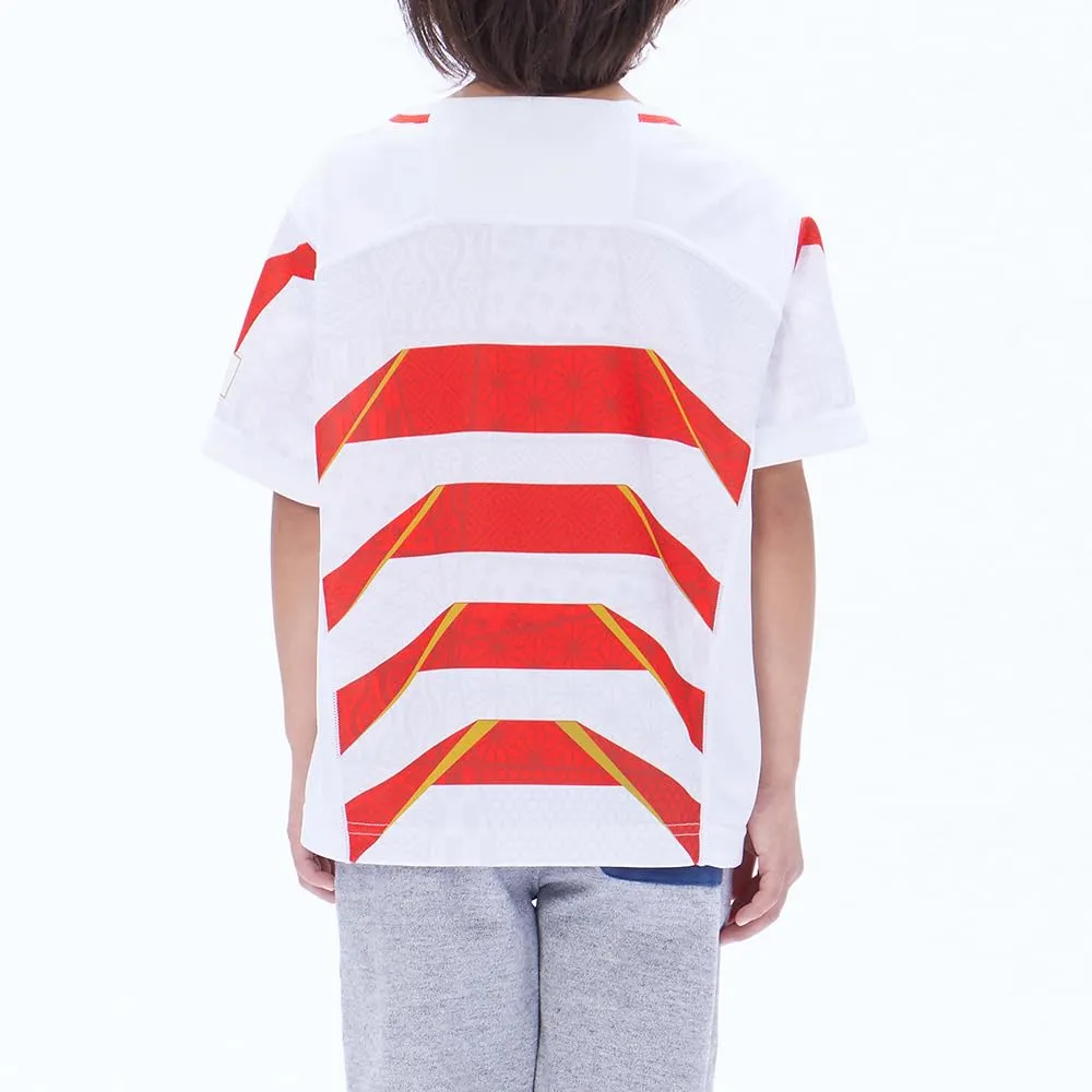 ラグビー日本代表2023新レプリカジャージーのキッズモデル伝統の赤と白を基調とし、和の文様を取り入れたファーストジャージー和の文様の中にフランスの国花であるユリの紋章があるのはフランス大会の成功を祈願するという開催国に対するリスペクトを意味世界に挑む選手たちを鼓舞し、代表チームと一緒に戦う日本中の気持ちを一つに繋げたジャージー