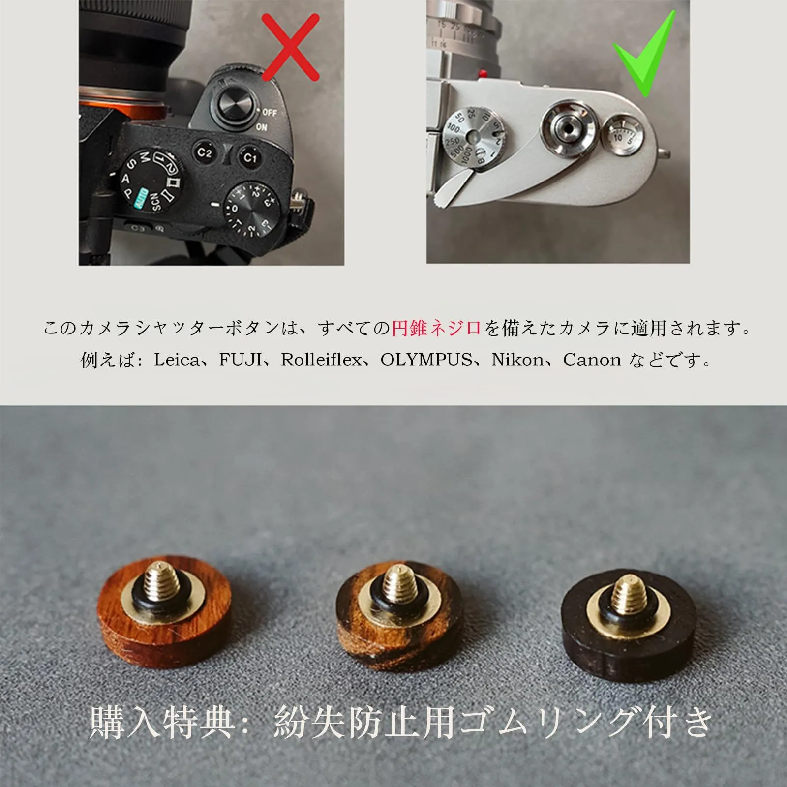 カメラレリーズボタン ミニサイズ白銅製 直径7mm 厚さ1mm ネジ式 円錐ネジ口対応 Leica/FUJI/Rolleiflex/OLYMPUS/Nikon/Canon 紛失防止ゴムリング付属