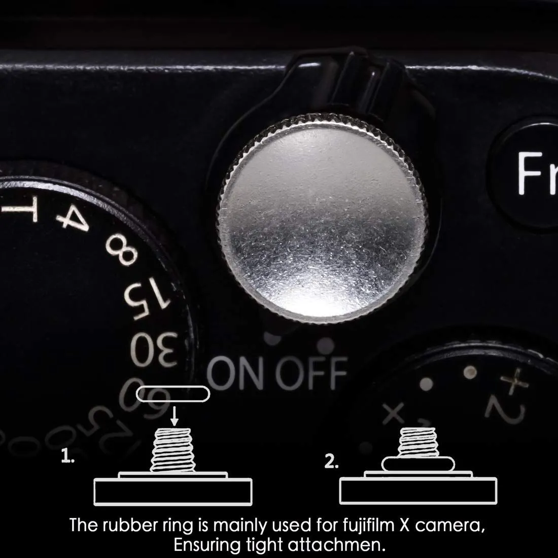 取り付けが簡単:フジシャッターボタンを時計回りに純正カメラのレンズ絞りソフトリリースボタンスロットにねじ込み、締めます。