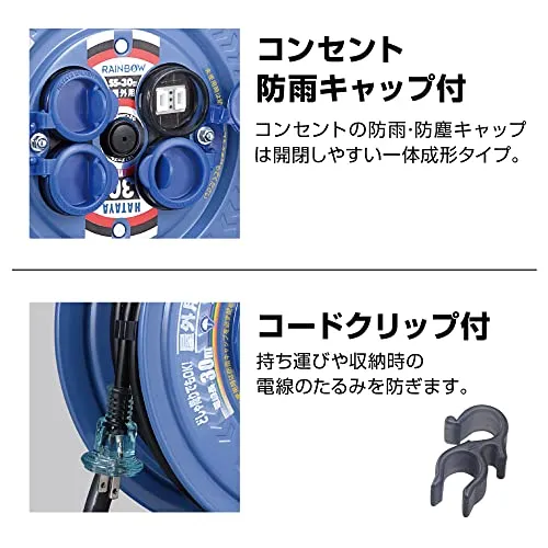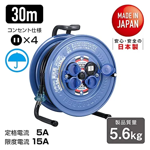 電線仕様長さ:30m 電線仕様:VCT1.25平方mm2心 コンセント定格:2P・15A・125V 製品定格:125V・5A 5c9267c4
