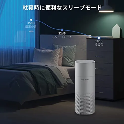 【スリープモード・メンテナンス簡単】就寝の際は『スリープモード』に切替えていただくことで、ライトとledインジケーターが全て消灯し、約24dBの動作音で時計の秒針の音より静かに浄化するため、安眠を邪魔しません。Kilo Proはフィルター交換式で、 丸ごと交換だからお手入れ簡単です。*よく洗えるフィルターというものがありますが、洗ってしまうと目詰まりや繊維が変形し新品時の性能を持続することが困難です。