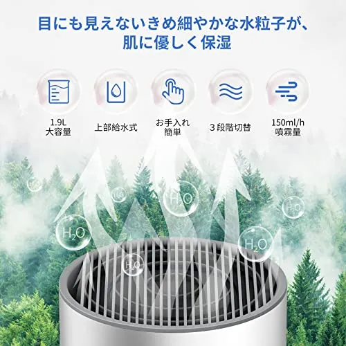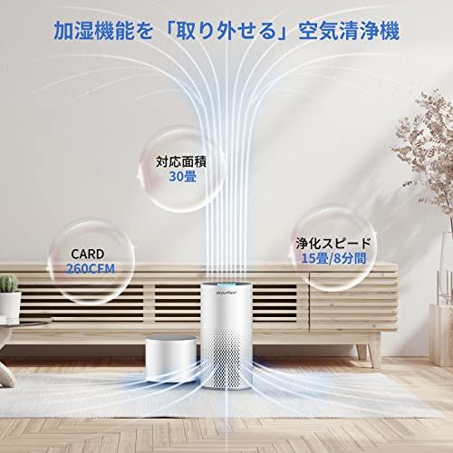 【気化式加湿・360空気強力浄化】フィルタには水分をしっかりと吸収する素材で出来ており、ファンで風を 当てて気化させることで空気の加湿を行います。超音波加湿器や加熱式加湿器と違い、稼働中はミストや蒸 気などが発生しないため、床や壁を濡らしてしまう心配もなく、赤ちゃんやお年寄りでも安心してお使いできます 。室内の空気を360 度から吸い込む筒形のデザインで、汚れを全方位で逃さず浄化します。水分も含んで放 出されるため、空間をさぱっりとした清潔感を保ってくれます。