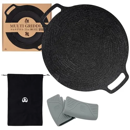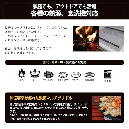 【これひとつで何役も!】 マルチグリドルは「焼く・炒める・煮る・揚げる・蒸す」と、幅広い料理に使える万能調理器具です。 直火やガスはもちろん、IHにも対応。シーズニング不要で手間いらず。アウトドアでもキッチンでも活躍します。肉・魚・スイーツまで、なんでもOK。SNSではステーキやアヒージョ、サムギョプサル、すき焼き、餃子、パスタ、ホットケーキ、ポップコーンなど、多彩なレシピが紹介されています。