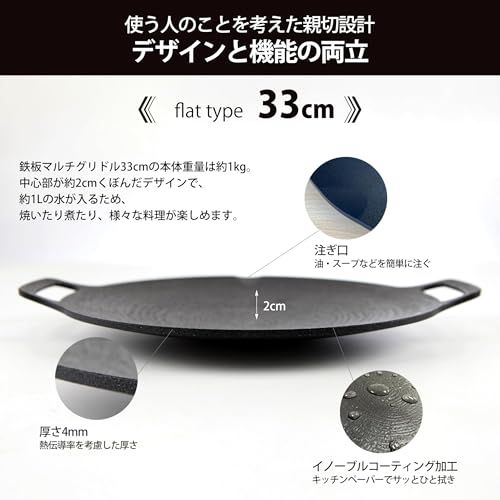 【驚きの軽さで、後片付けもラク!】 マルチグリドルは、約1kg(33cmの場合)という軽さとシンプルなデザインで、キャンプでもキッチンでもマルチに活躍します。重量のあるフライパンは、出し入れや洗浄がひと苦労。でも、軽量なマルチグリドルなら、使いたいときにサッと取り出して、終わったらササッと洗って収納するだけ。 どなたでも毎日の調理でも無理なく手軽に使え、調理の負担がぐっと軽くなります。力に自信がない方や、毎日の調理をもっとラクにしたい方にもぴったりの一枚です。