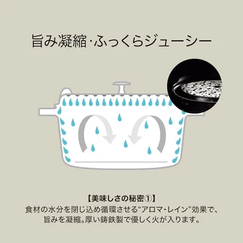 【旨みを逃さないピコ構造】蓋裏の突起(ピコ)が蒸気を循環させ、素材本来の旨味を閉じ込めて、ふっくらジューシーに仕上げます。