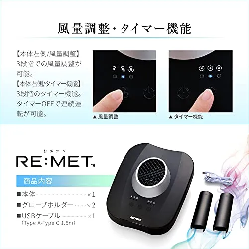 デイトナ(Daytona) バイク ヘルメット消臭機 乾燥機 プラズマイオン 3段階風量 タイマー付き グローブも対応 RE:MET(リメット) ブラック 19264・ 837aceb2