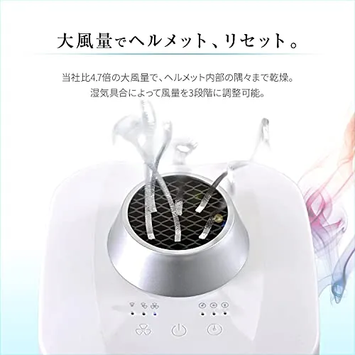 ヘルメット・グローブを大風量でスピーディーに消臭&乾燥 3段階の風量調整 / 切タイマー付き 村田製作所が開発したプラズマイオン発生器を採用 本体サイズ:W215D265H110mm/760g 電源:DC5V2A / USB Cタイプ / 消費電力:7.6W(風量・強) 837aceb2
