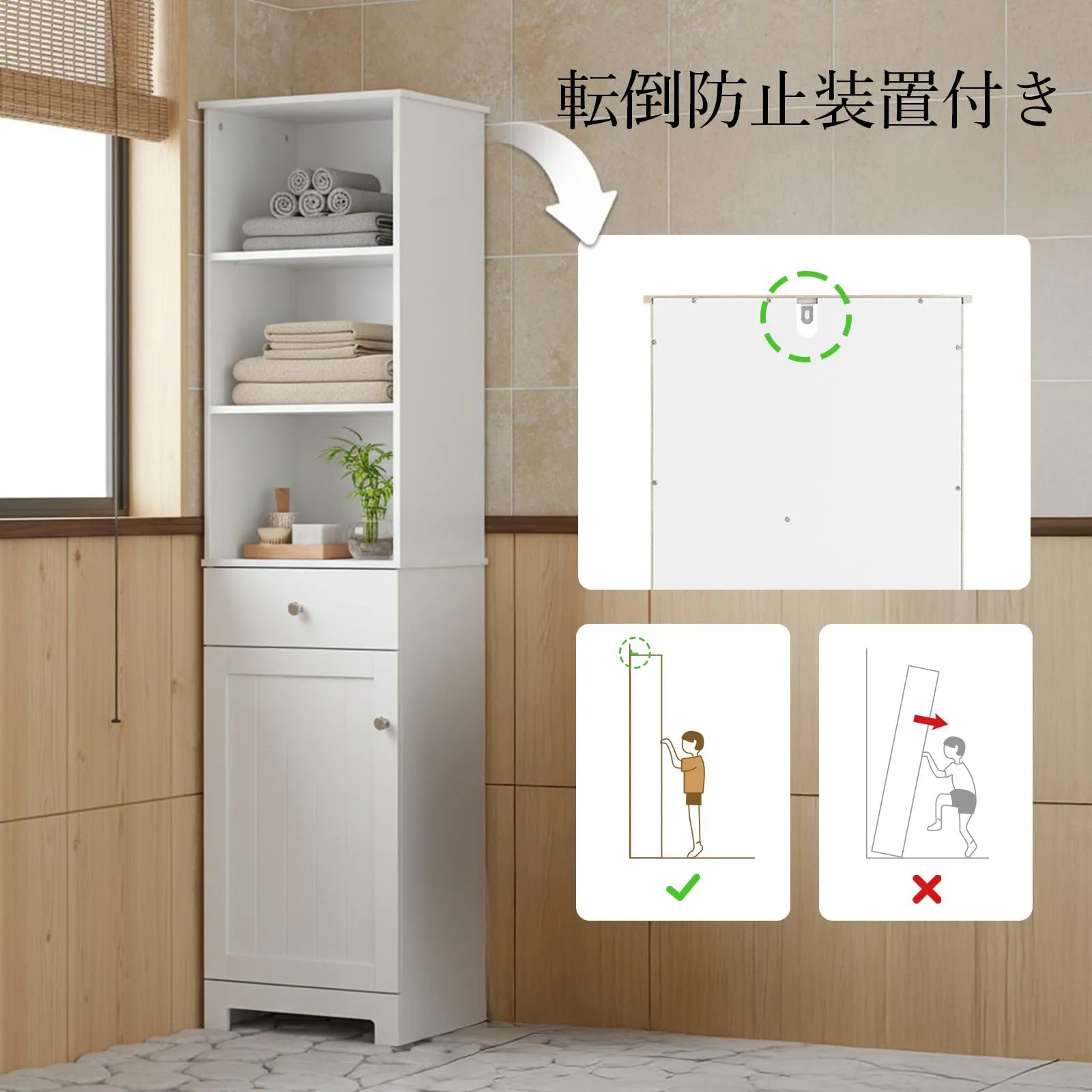 【ちょっとした隙間を活用】幅40cm、高さ161.5cmのコンパクトなデザインで、お部屋の隙間にぴったり収まります。普段使わないアイテムは扉付きの棚や引き出しに収納でき、空間をスッキリと整頓し、隠す収納が可能です。これにより、狭い場所でも効率的に隙間収納として活用できます。