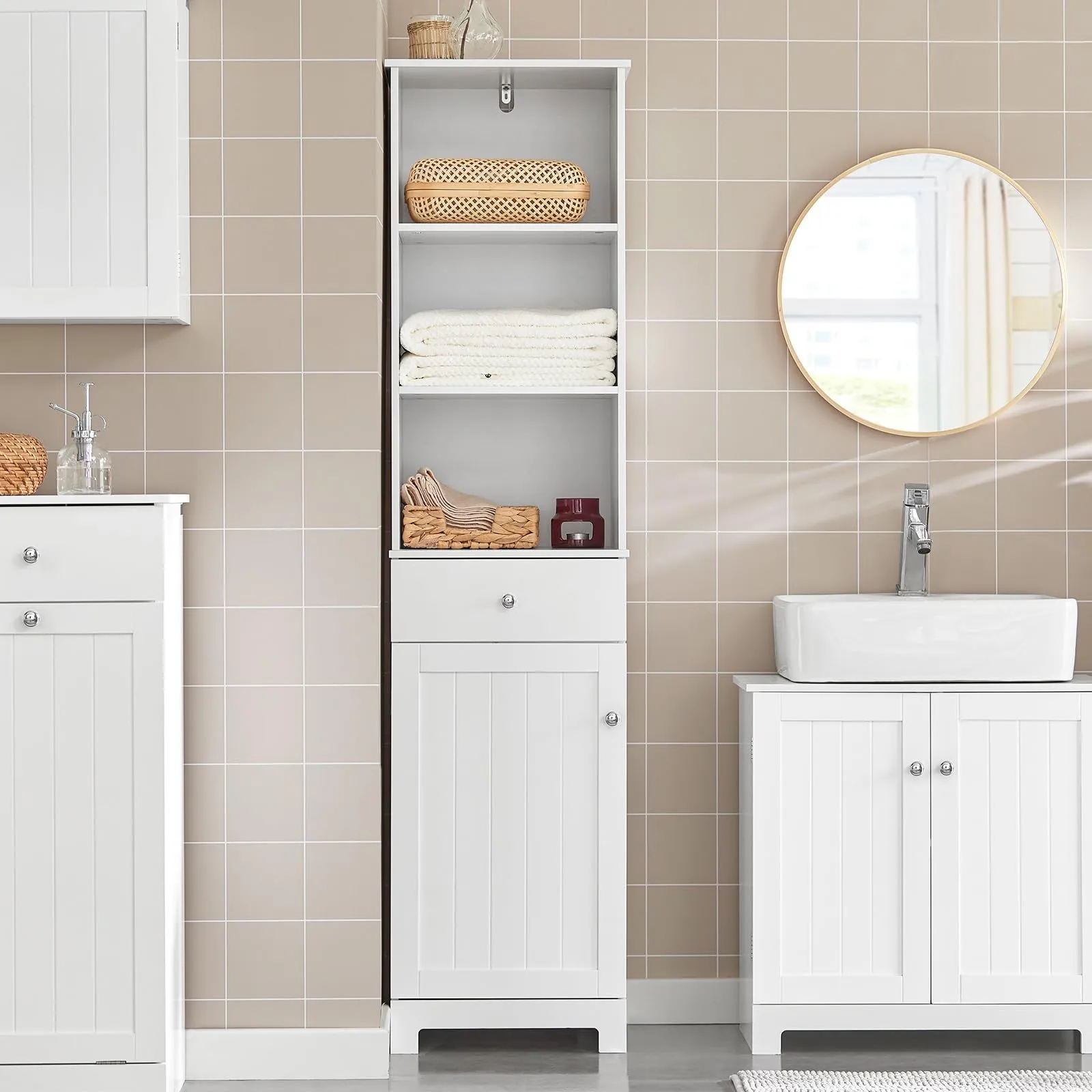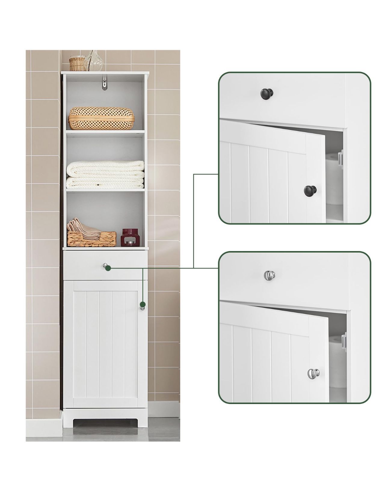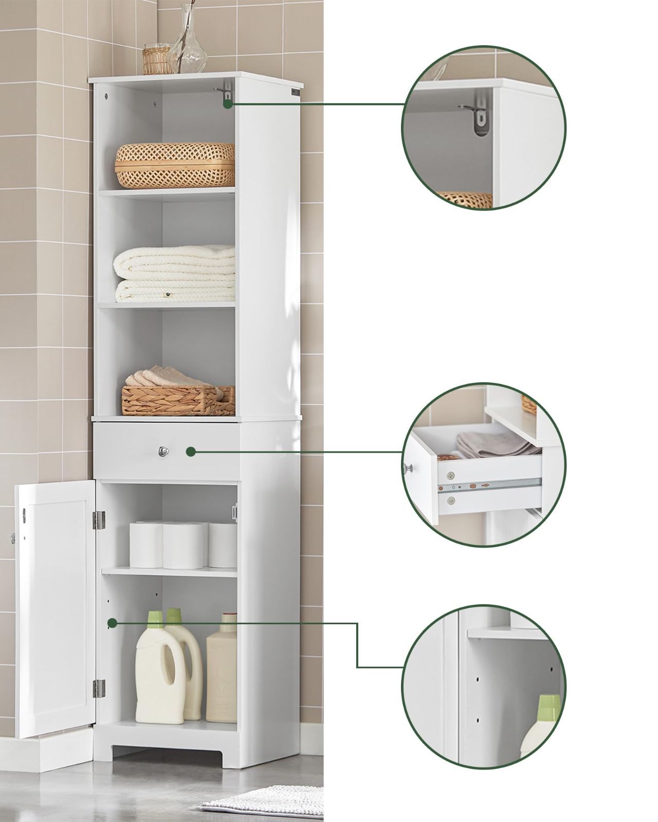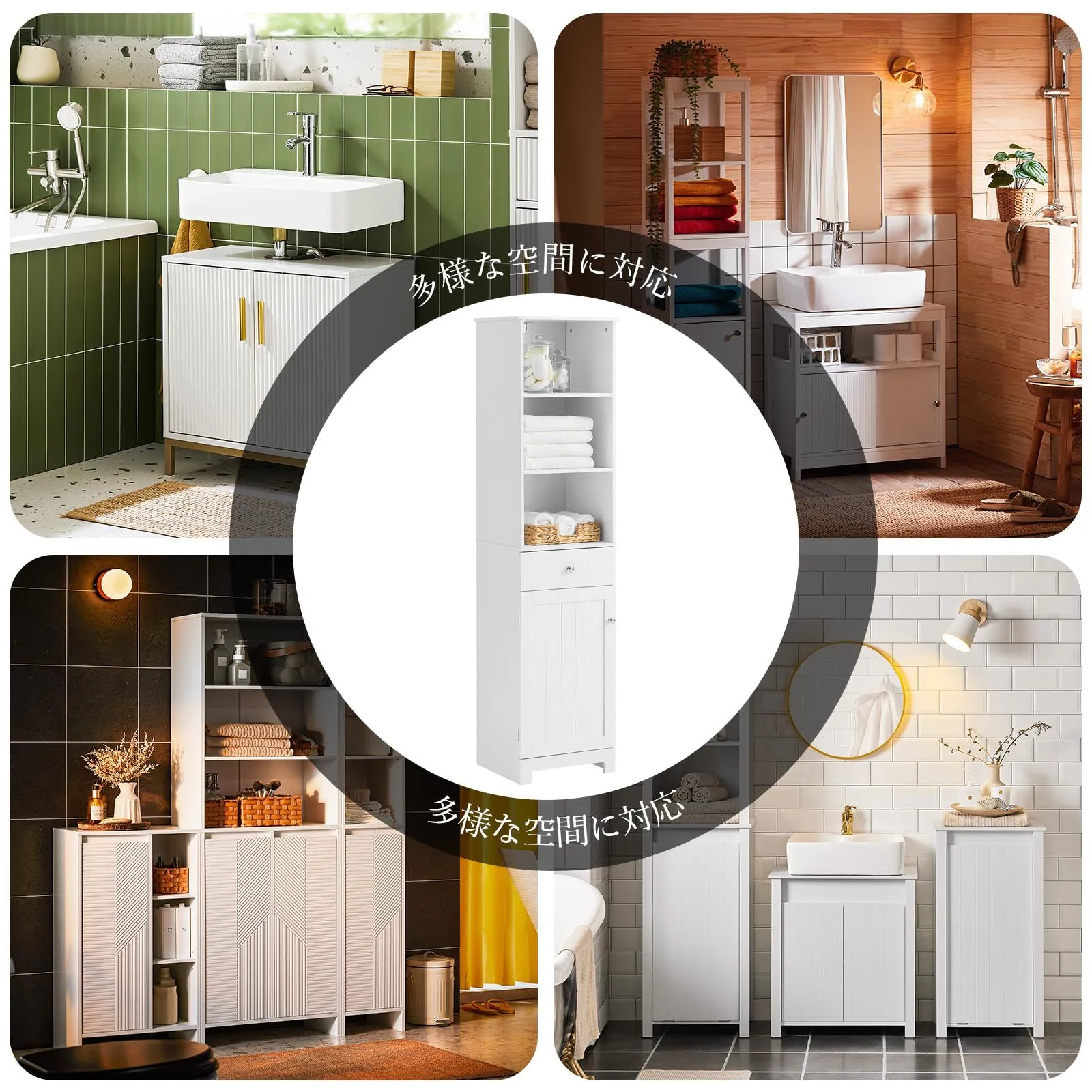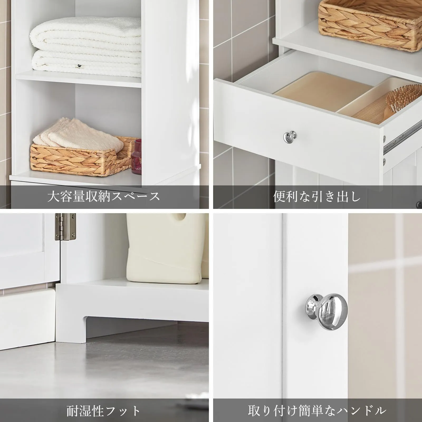 SoBuy 隙間収納 ランドリーラック 食器棚 洗面所 収納 キャビネット 隙間ラック 幅40*奥行35*高さ161cm 引き出し付き 北欧風 大容量 ランドリーチェスト ランドリー収納 収納棚 洗面所キャビネット すきま収納 サニタリーラック(BZR17-W)