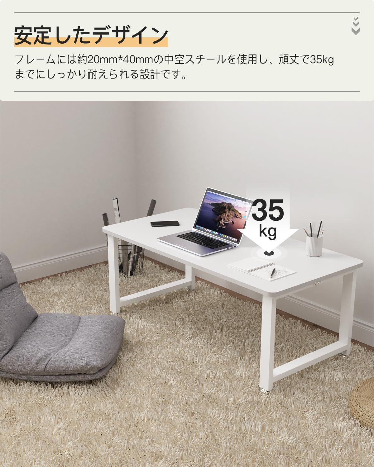 【丈夫的な設計】フレームには約20mm*40mmの中空スチールを使用し、頑丈で35kgまでにしっかり耐えられる設計です。