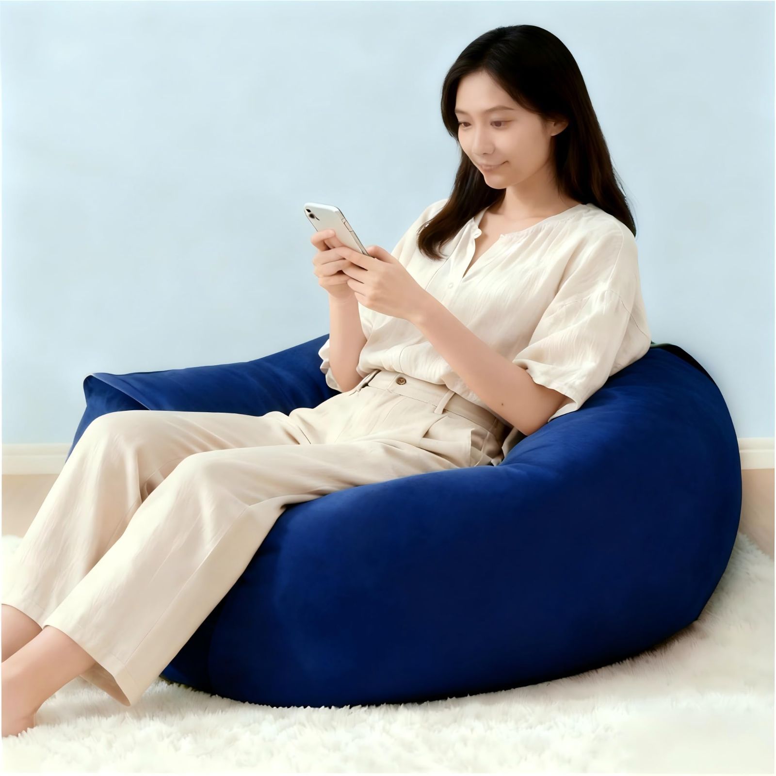 ビーズクッション ソファ型 フロアソファ 座椅子 座布団 一人掛け ひとをだめにするクッション 軽量 洗えるカバー 無臭 bean bag 特大 体圧分散 (ネイビー, X-Large 65×65×43cm)