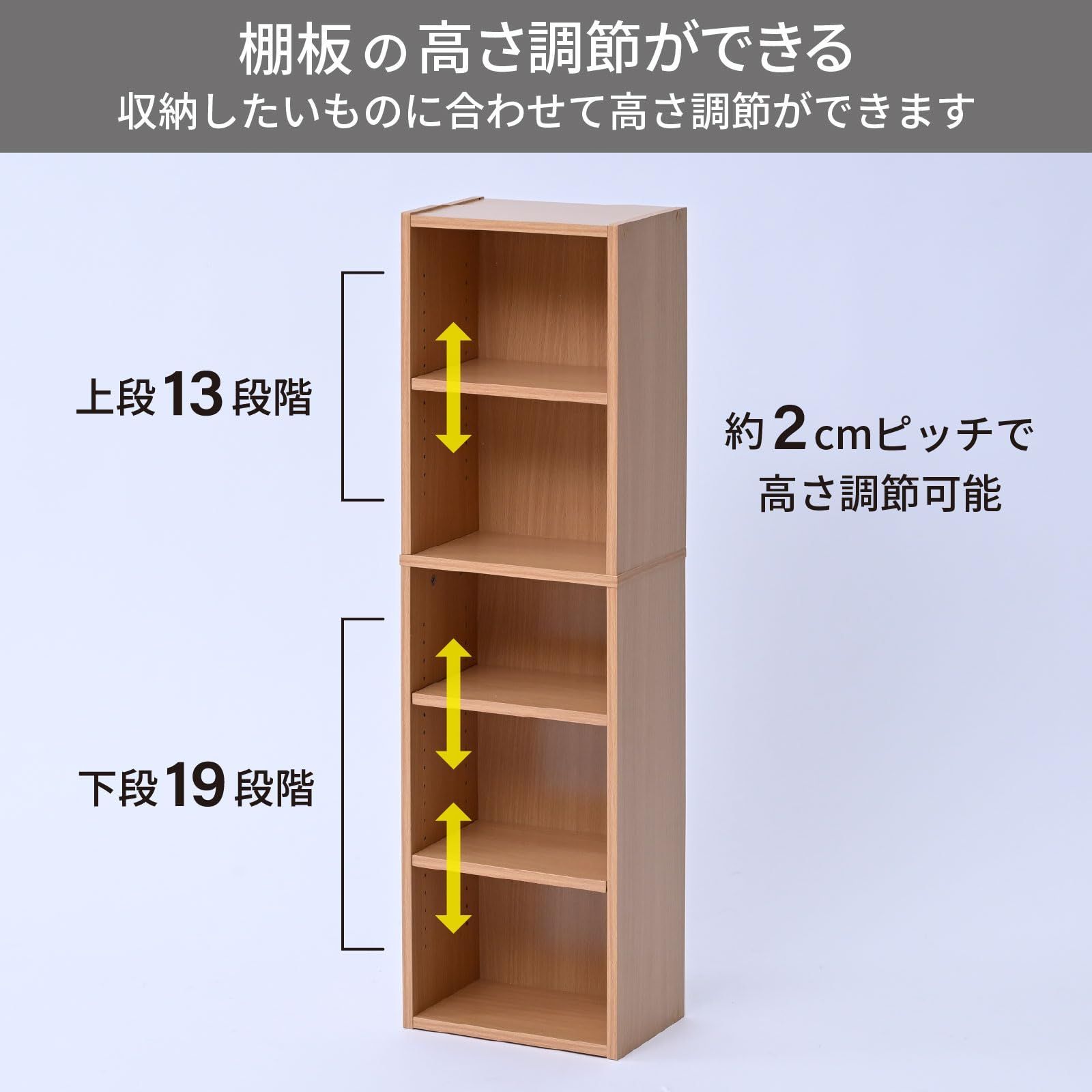 ●可動棚の高さ調節 : 約2cmピッチ(上段13段階、下段19段階)