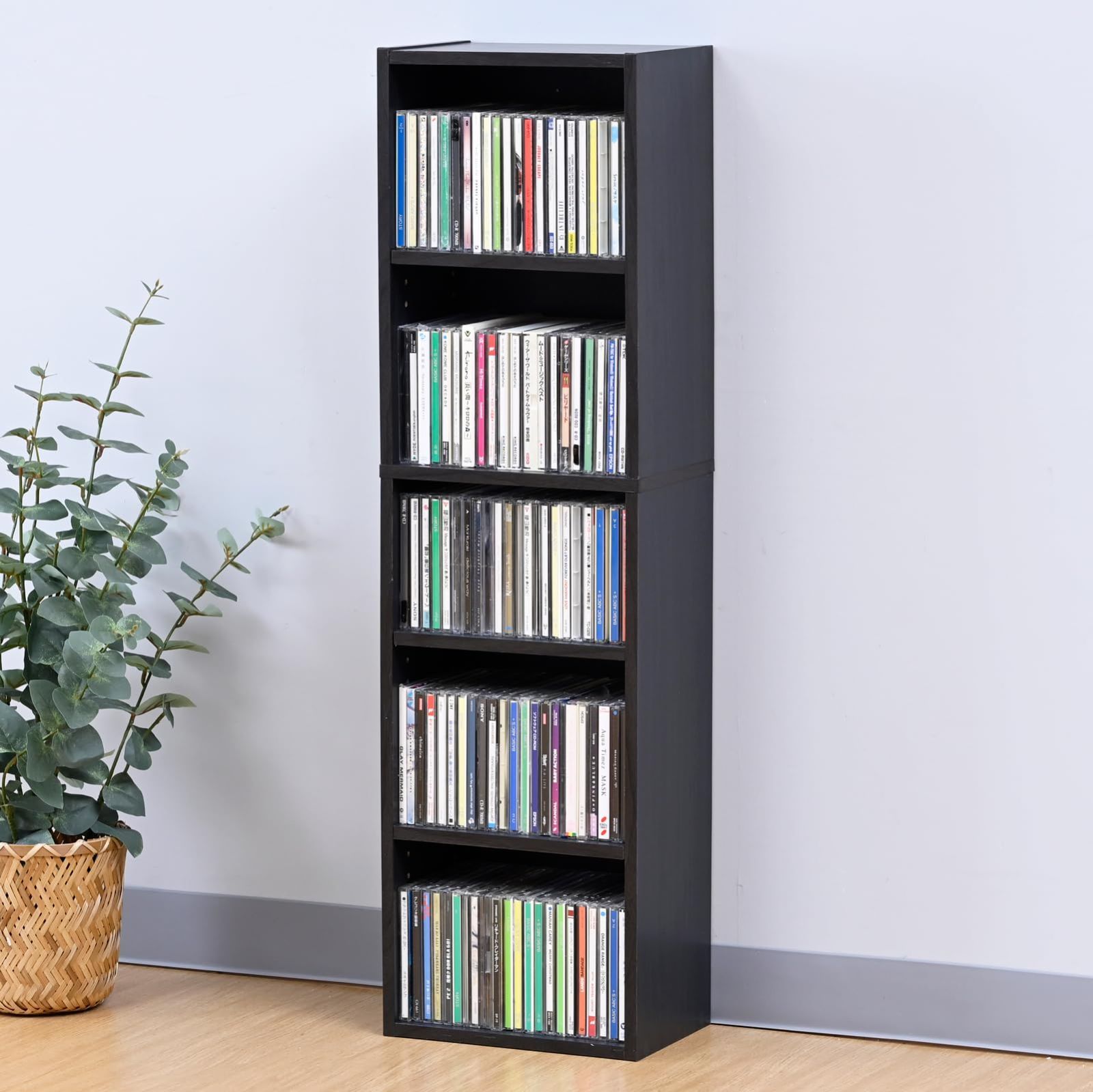 山善(YAMAZEN) ラック 棚 5段 CDラック 本棚 スリム 大容量 可動棚 コミック DVD 収納 幅25.5×奥行17×高さ90.5cm 収納棚 シェルフ 省スペース 組立品 ダークブラウン CCDCR-2690(DBR)R
