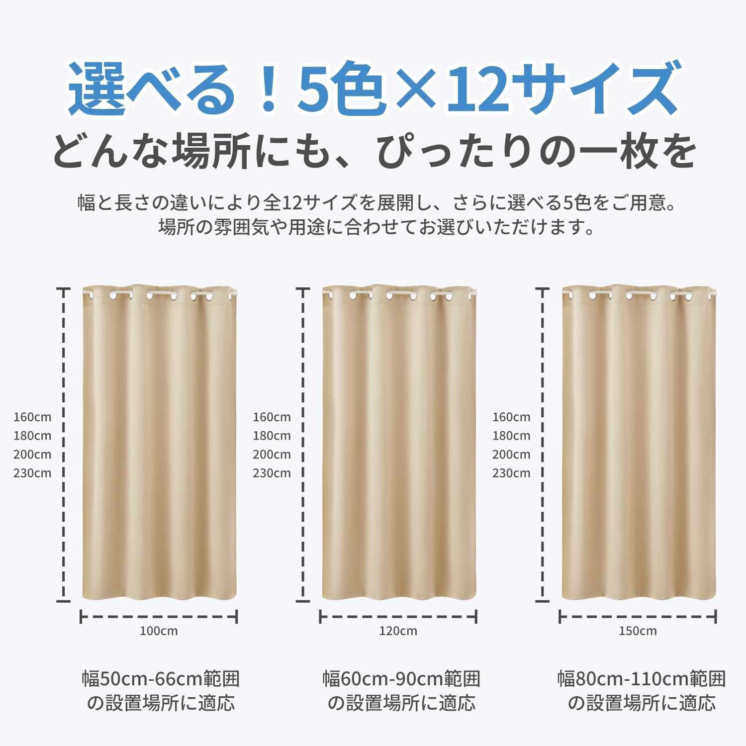 【商品仕様】※サイズ:幅120cmx丈230cm「幅60cm-90cm範囲の設置場所に適応しております」※素材:ポリエステル+ステンレス(ハトメ部分)、カーテン生地はシルクのような柔らかさとマットな質感を実現。優れたドレープ性を持ち、耐久性に優れ、長期間使用可能。※機能:遮光1級/遮熱保温/間仕切り/ウォッシャブル。(ご注意:つっぱり棒は付属しておりません)