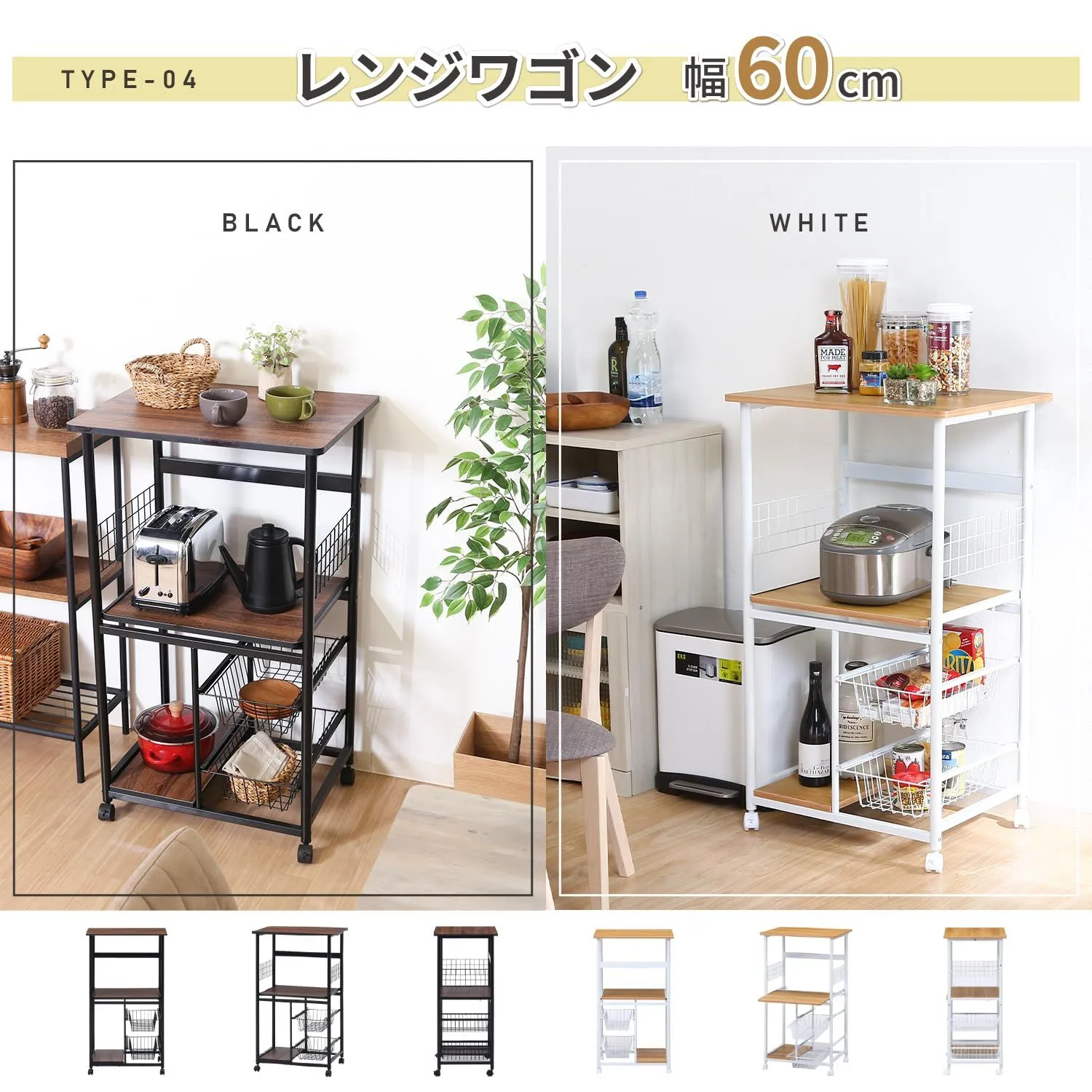 レンジや炊飯器の収納に便利なキッチンワゴンです。