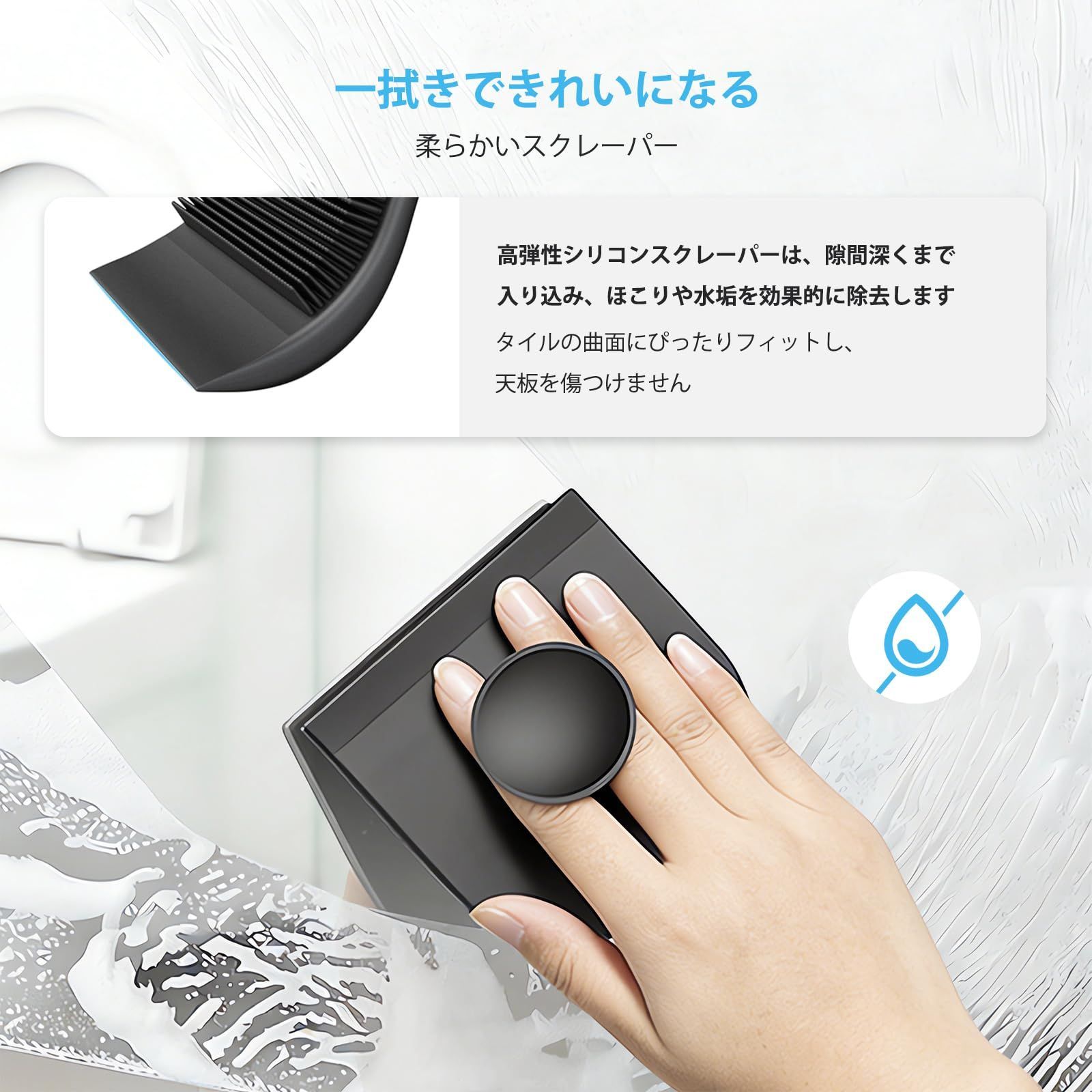 シリコンスクイージークリーナーブラシ - 水切り機能付きバスルームブラシ 吸盤収納 浮遊収納可能 浴室とキッチンに最適 (白1個入り)